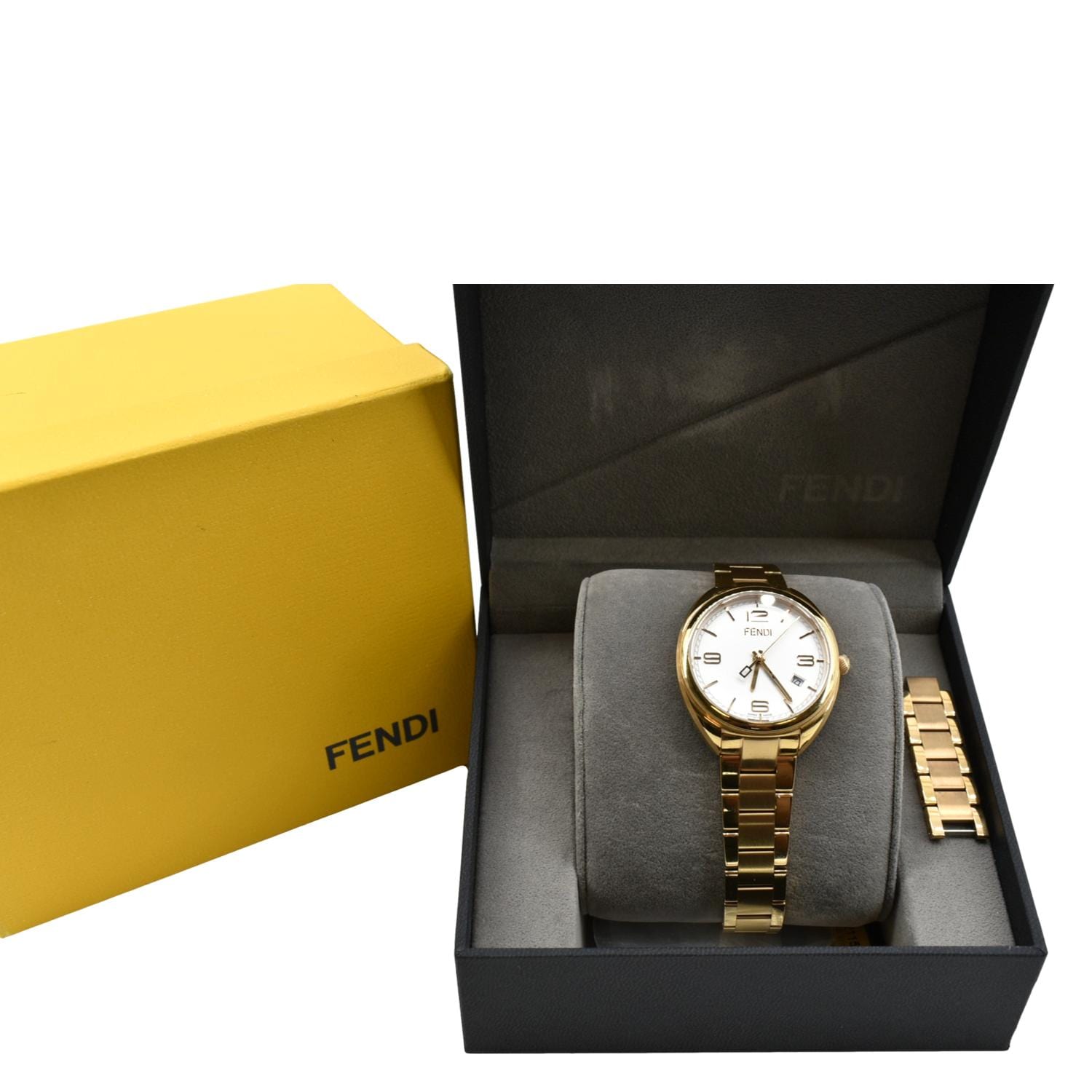 FENDI Momento Swiss Quartz Stainless Steel Date Watch White Dial 34mm