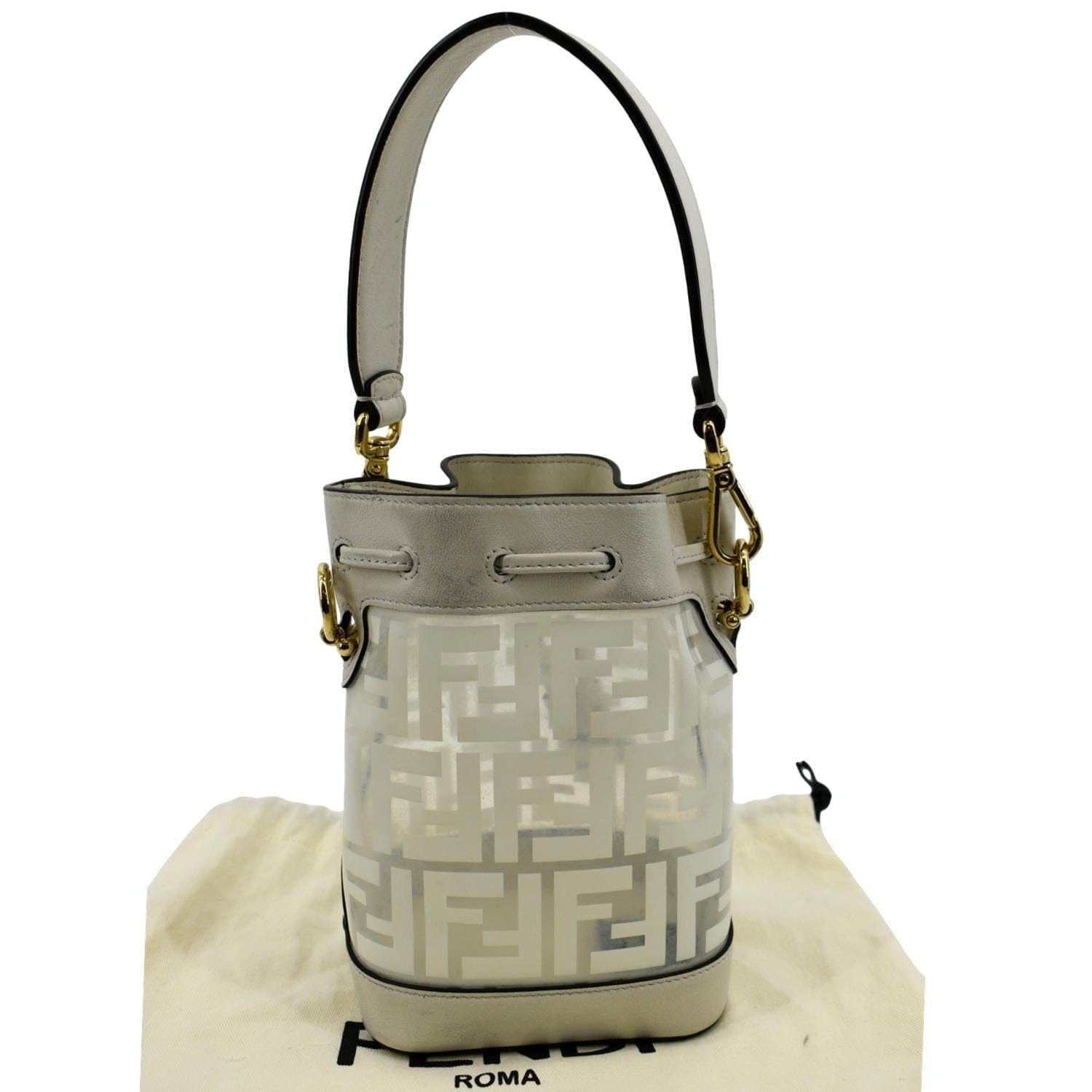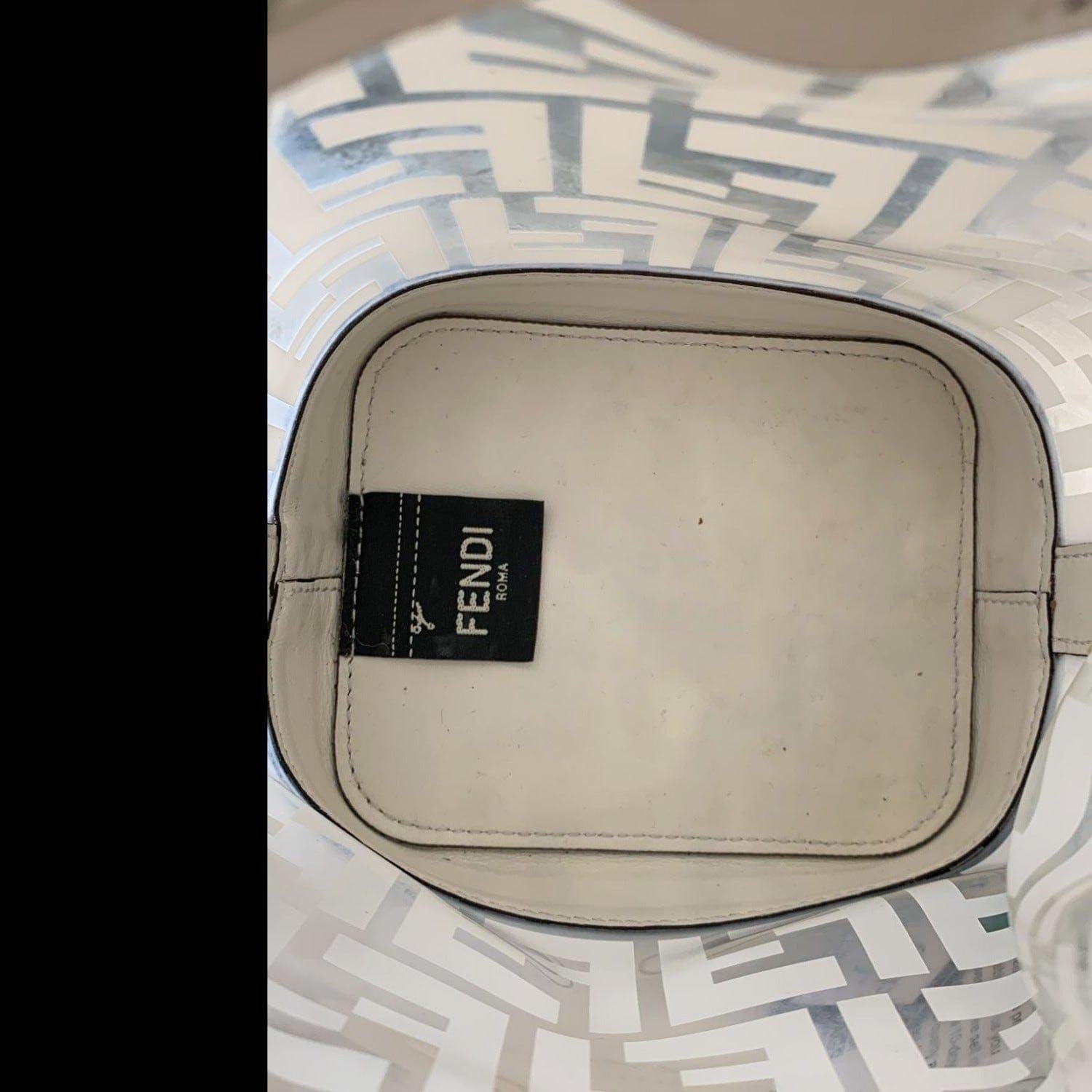 FENDI Mon Tresor Drawstring FF PVC Leather Bucket Bag White