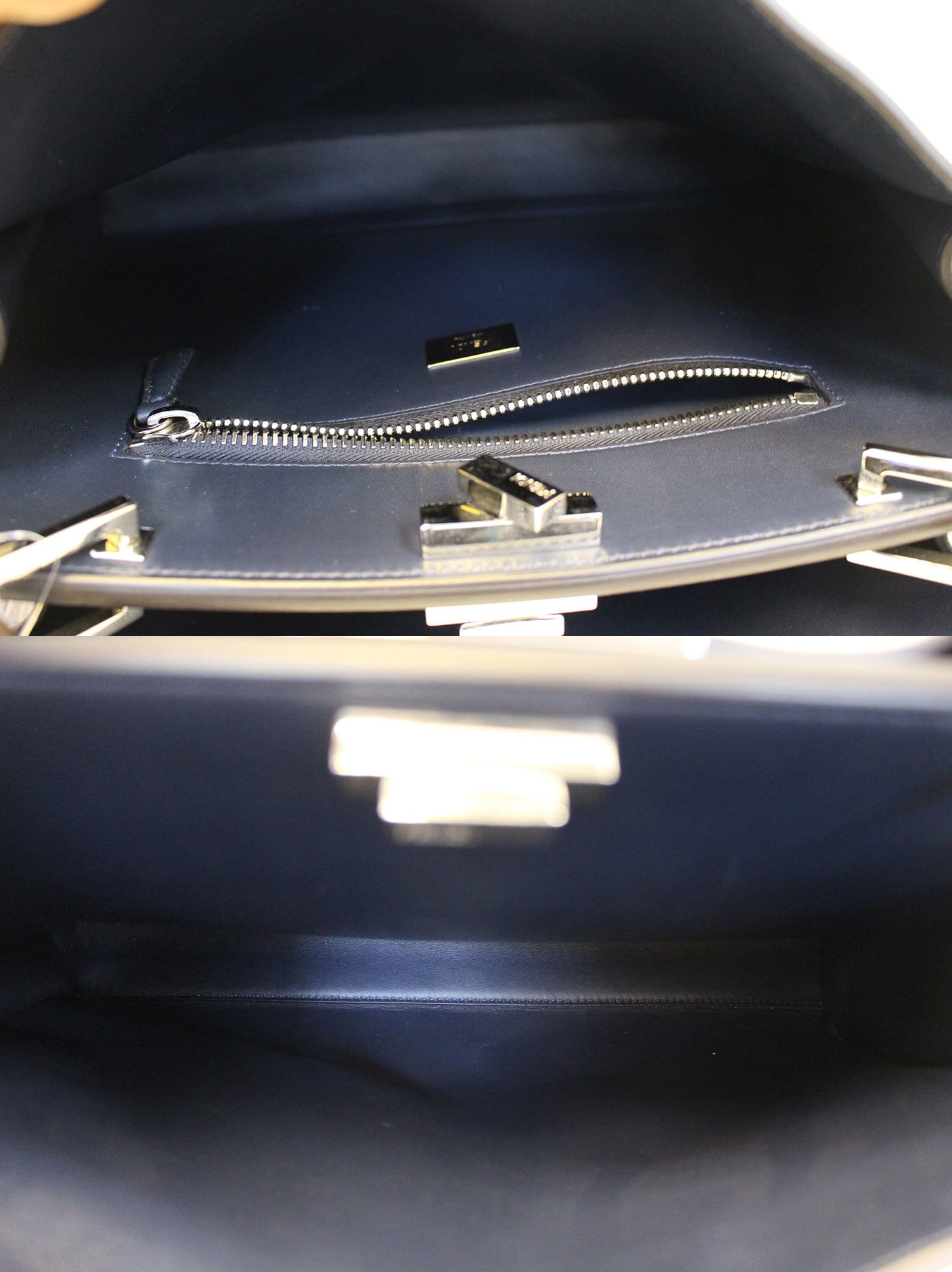 FENDI Peekaboo Essential Slate and Dark Blue Leather Handbag.