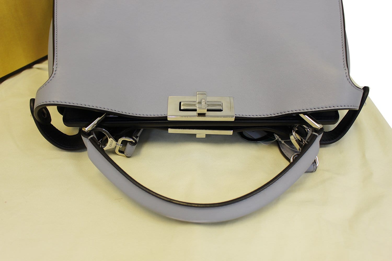 Fendi Slate-grey calfskin handbag, perfectly smooth with raw-cut finish. Composed of two compartments, both fastened with the iconic Peekaboo twist lock.