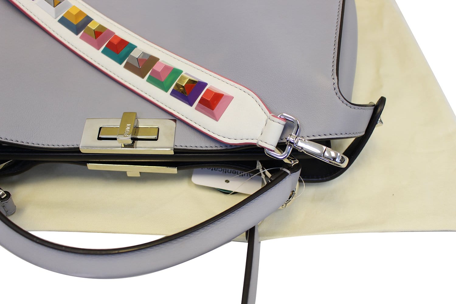 FENDI Peekaboo Essential Slate and Dark Blue Leather Shoulder Handbag