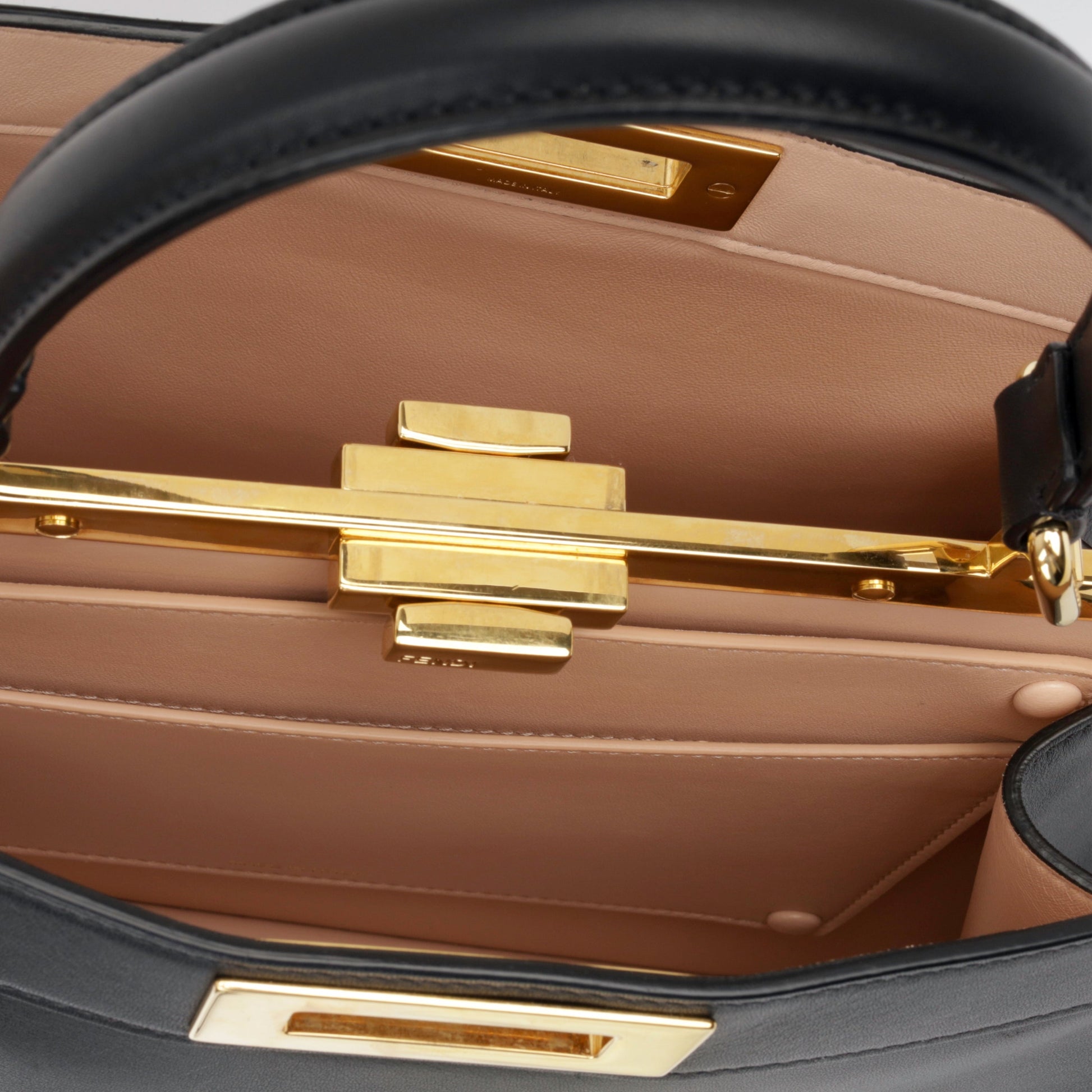 An iconic signature from the Italian fashion house, the Fendi Peekaboo is a timeless classic that will never go out of style. Sleek, stylish and effortlessly chic in the most discreet way possible, the Peekaboo was made for the refined woman with a love for luxury and an understated sense of style. Carefully crafted from black lambskin leather and a complimenting gold hardware.