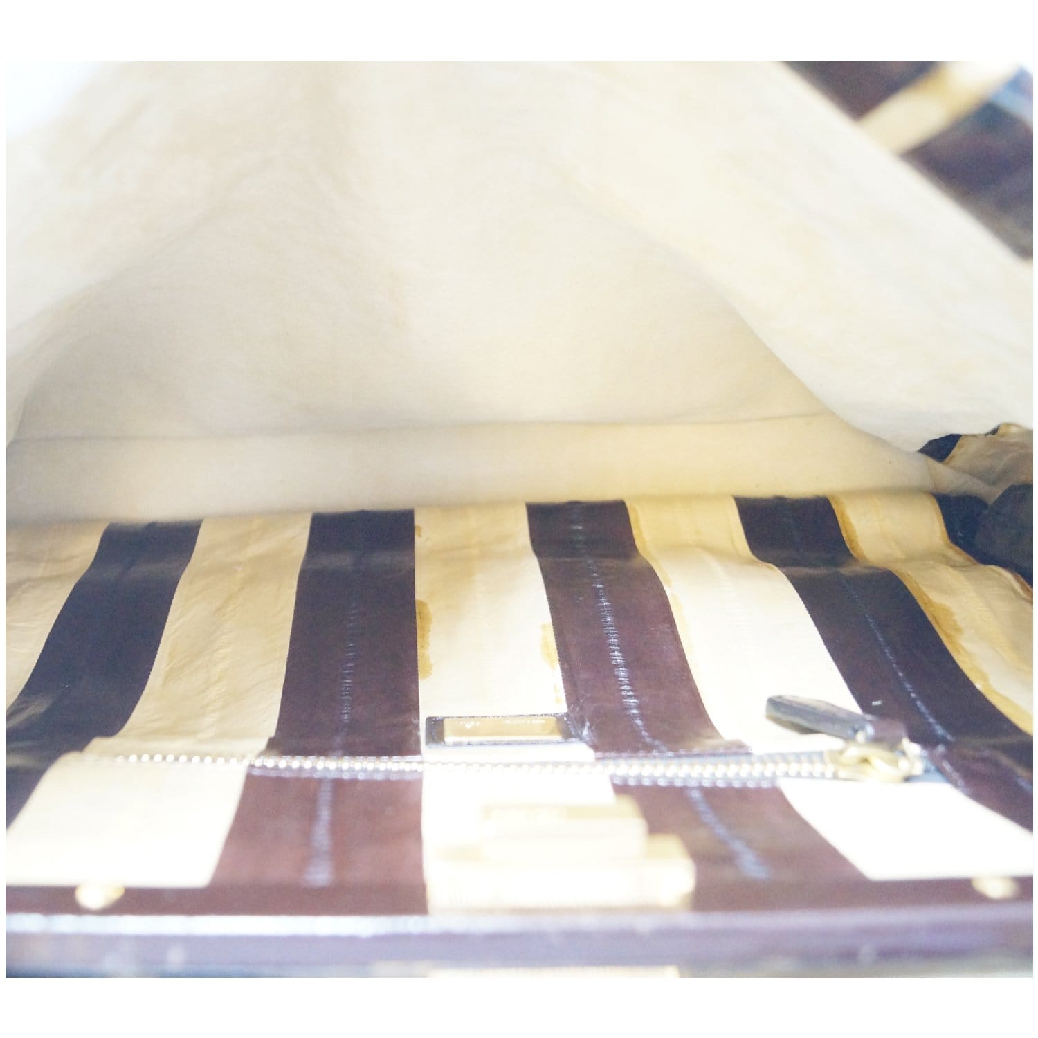 FENDI Peekaboo Striped Eel Skin Leather Shoulder Bag Brown