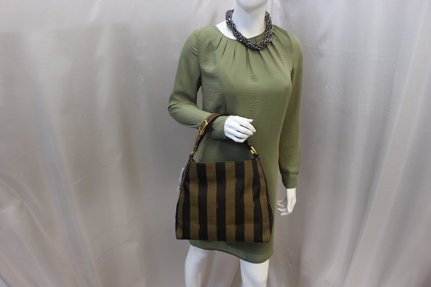 FENDI Pequin Tonal Stripe Hobo Bag