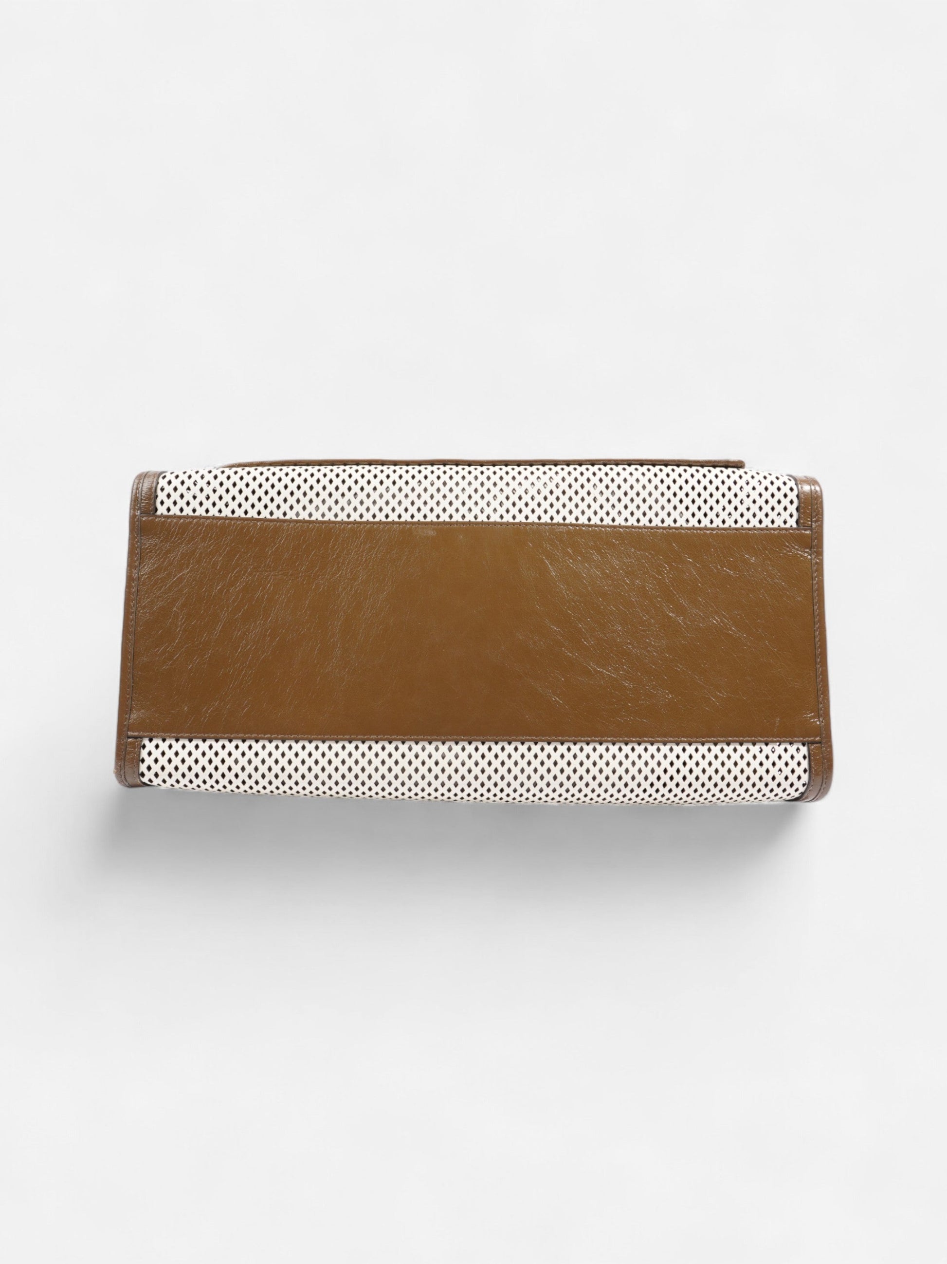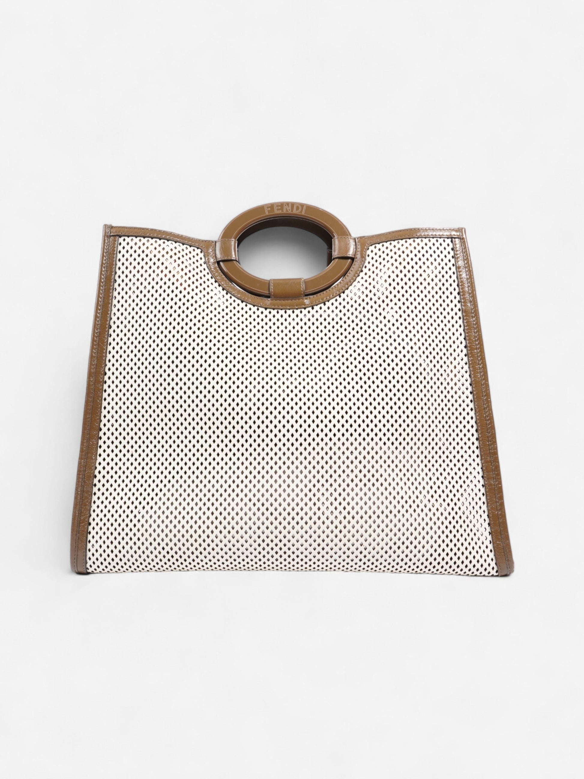 Fendi Perforated Runaway Shopper Tote White / Brown Leather Large