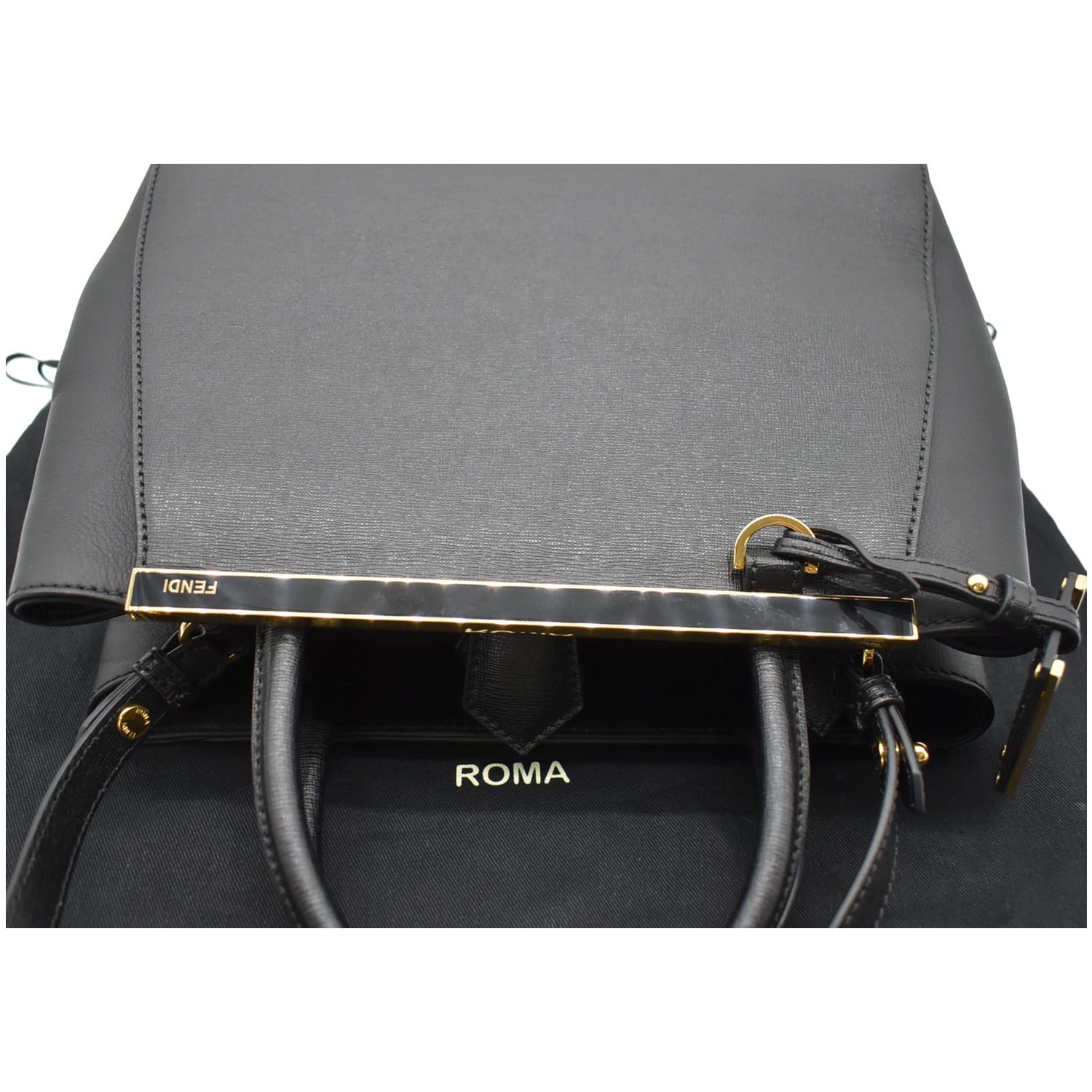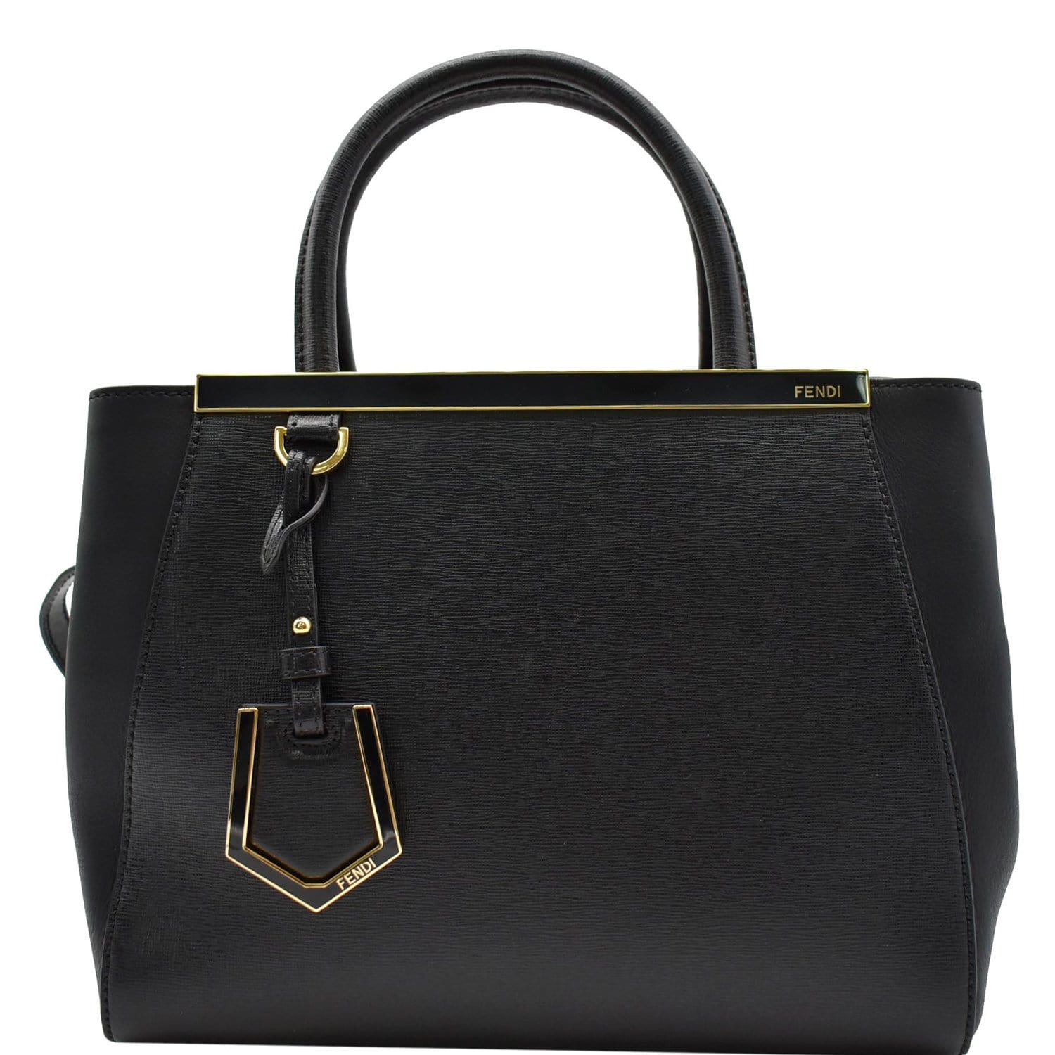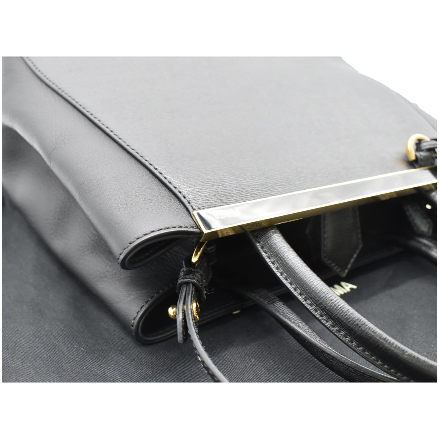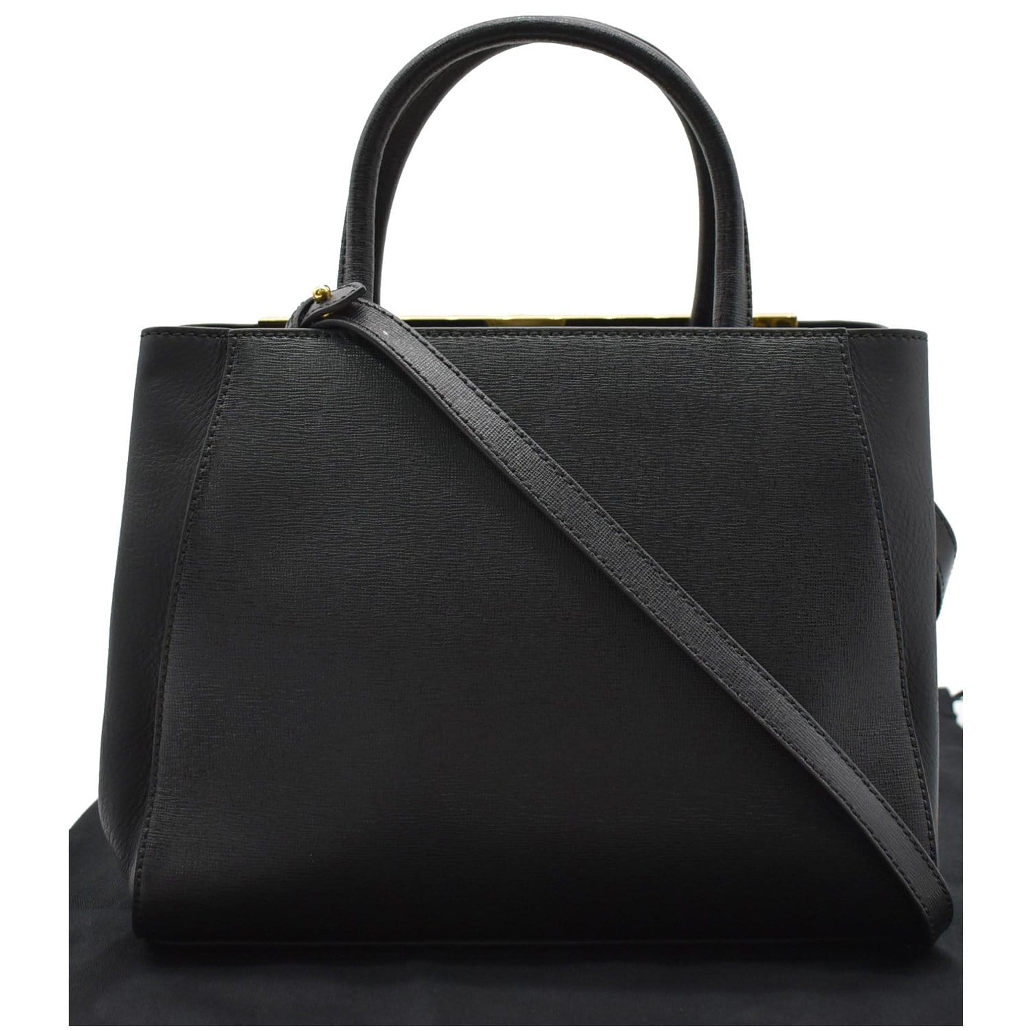 FENDI Petite 2Jours Vitello Leather Elite Tote Shoulder Bag Black