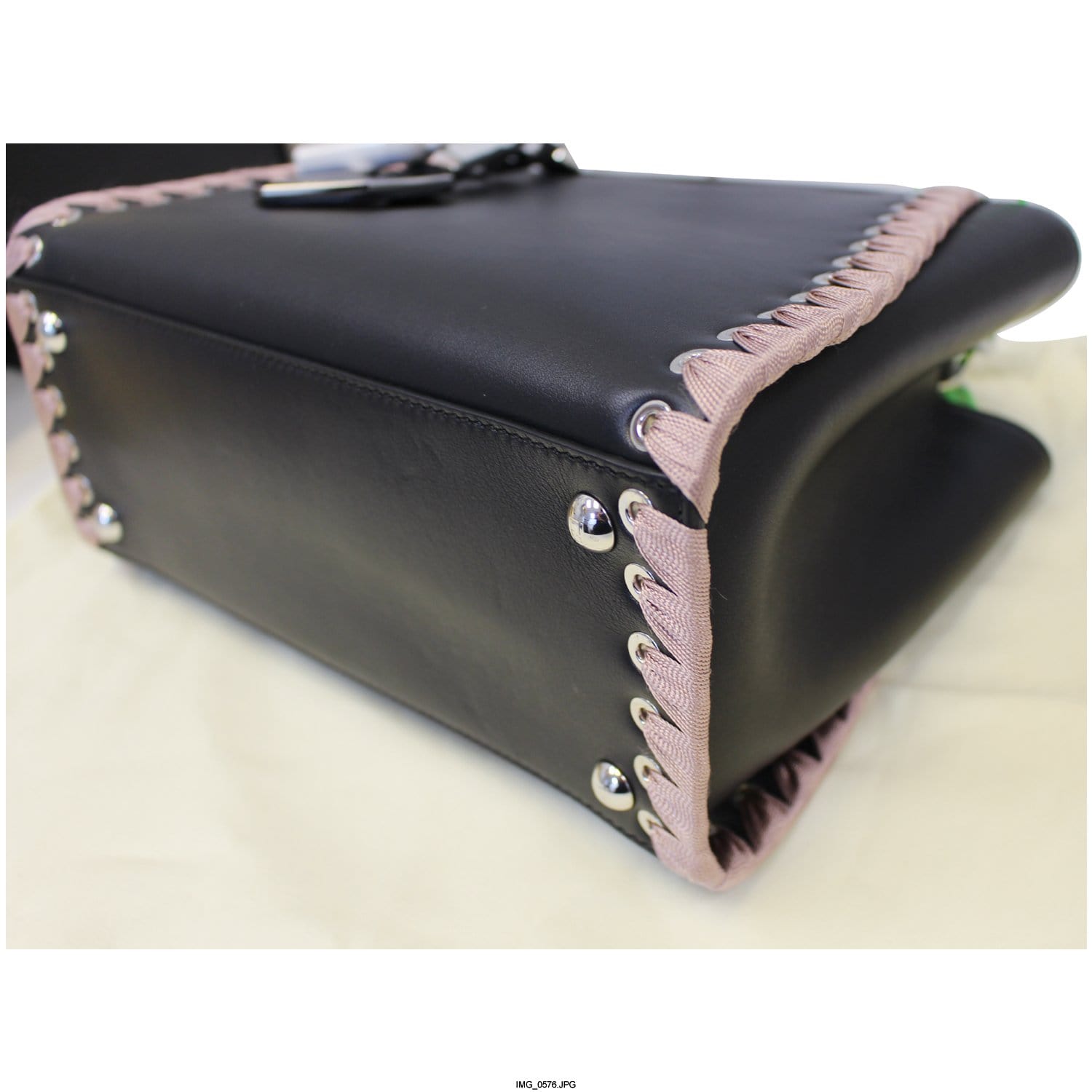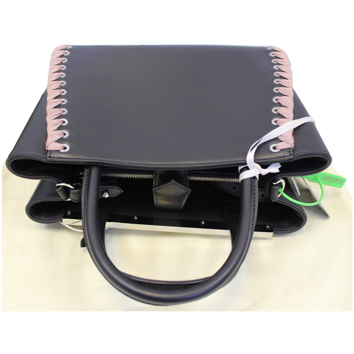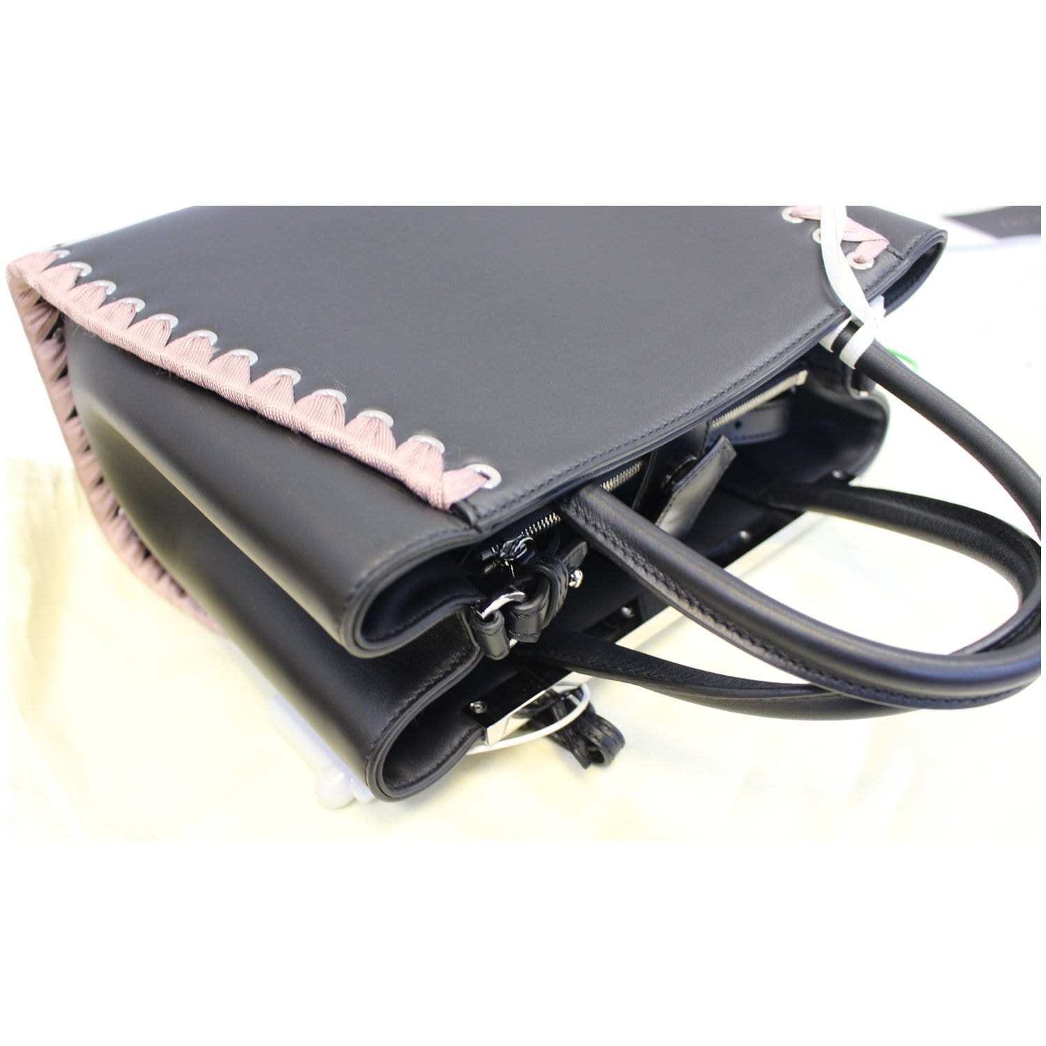 FENDI Petite 2Jours Whipstitch Leather Tote Shoulder Bag Black