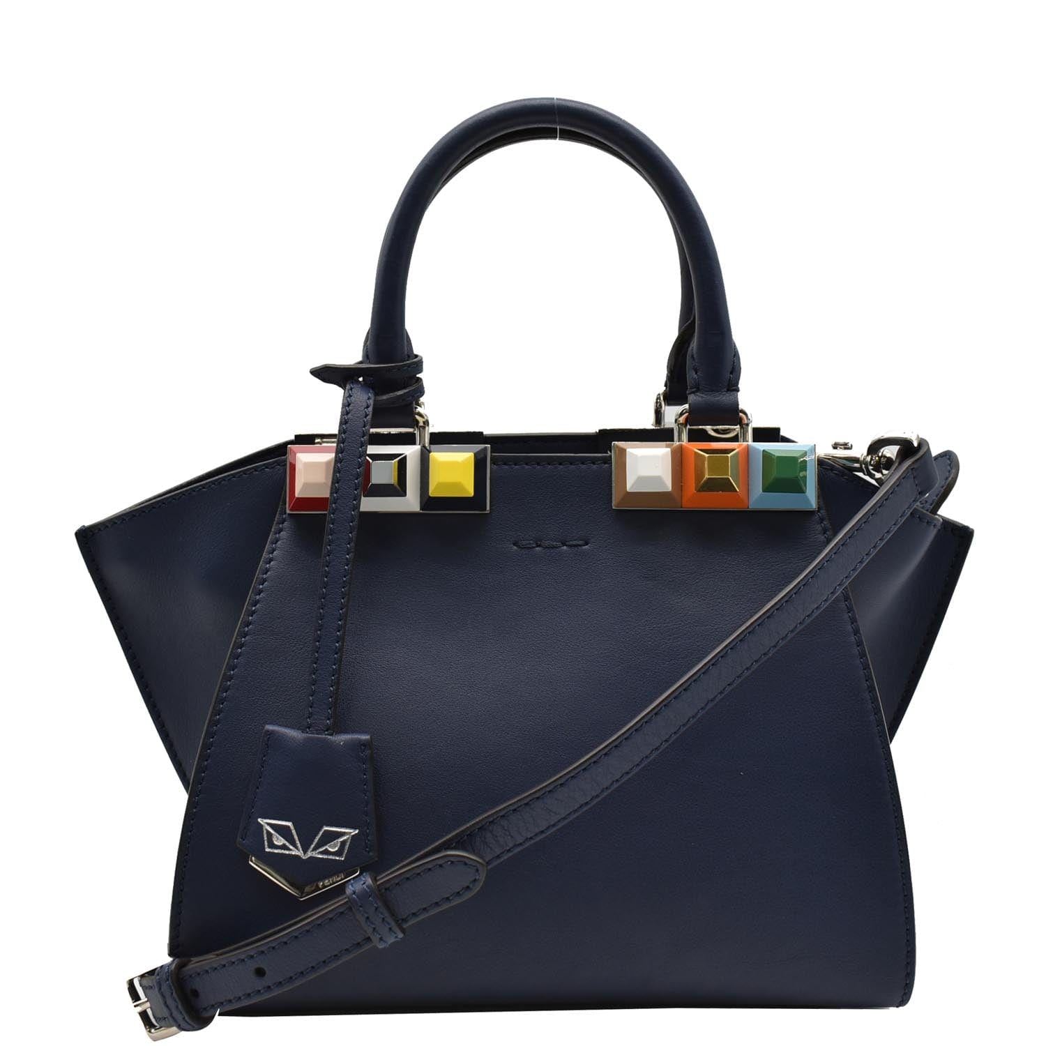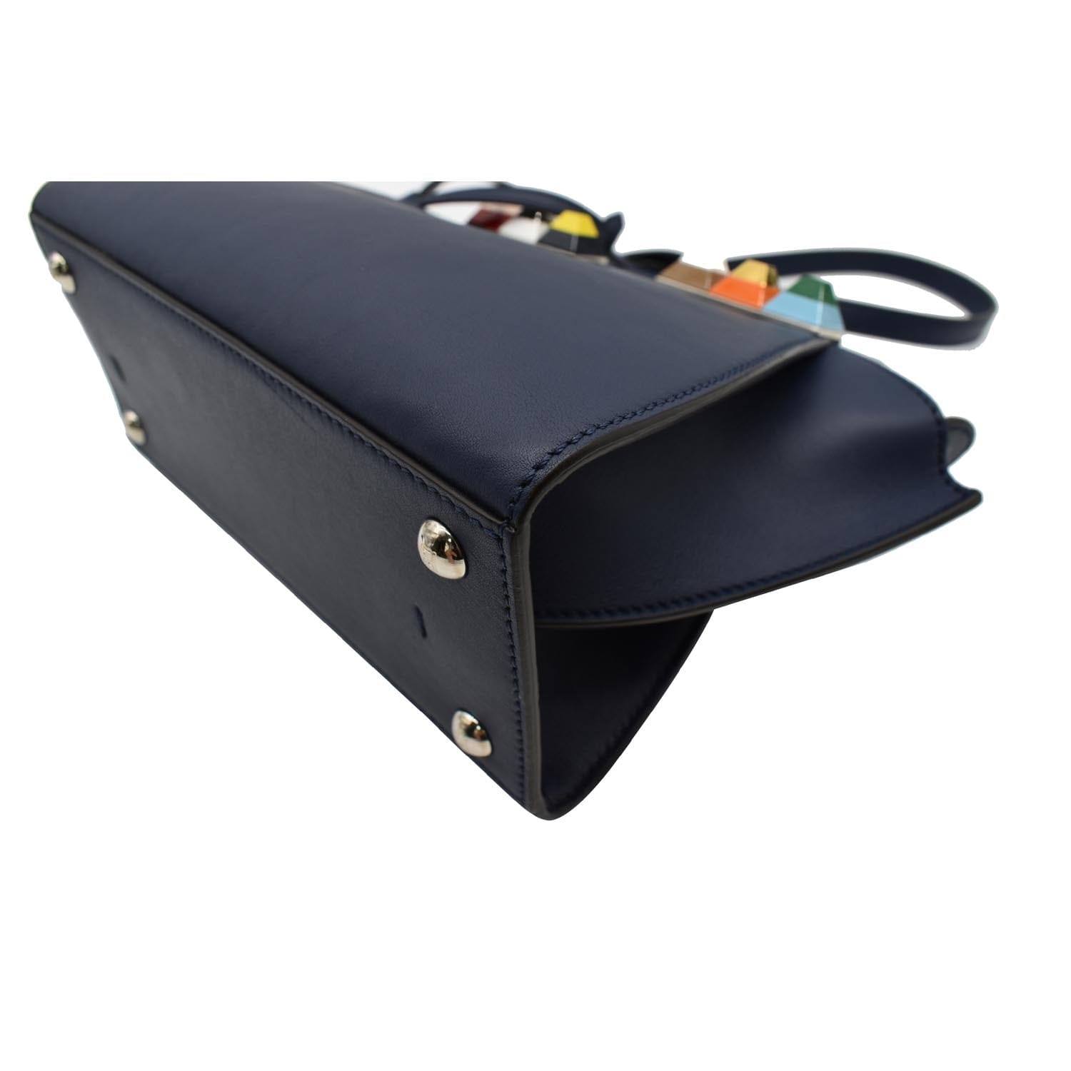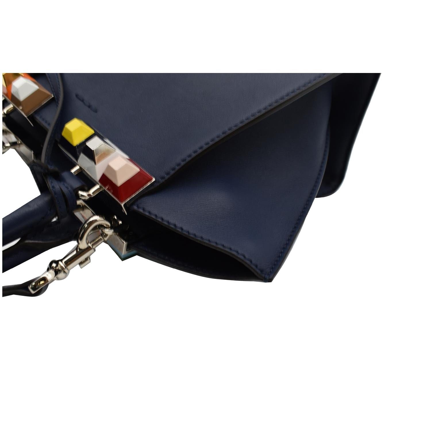 FENDI Petite 3Jours Studded Leather Tote Bag Dark Blue