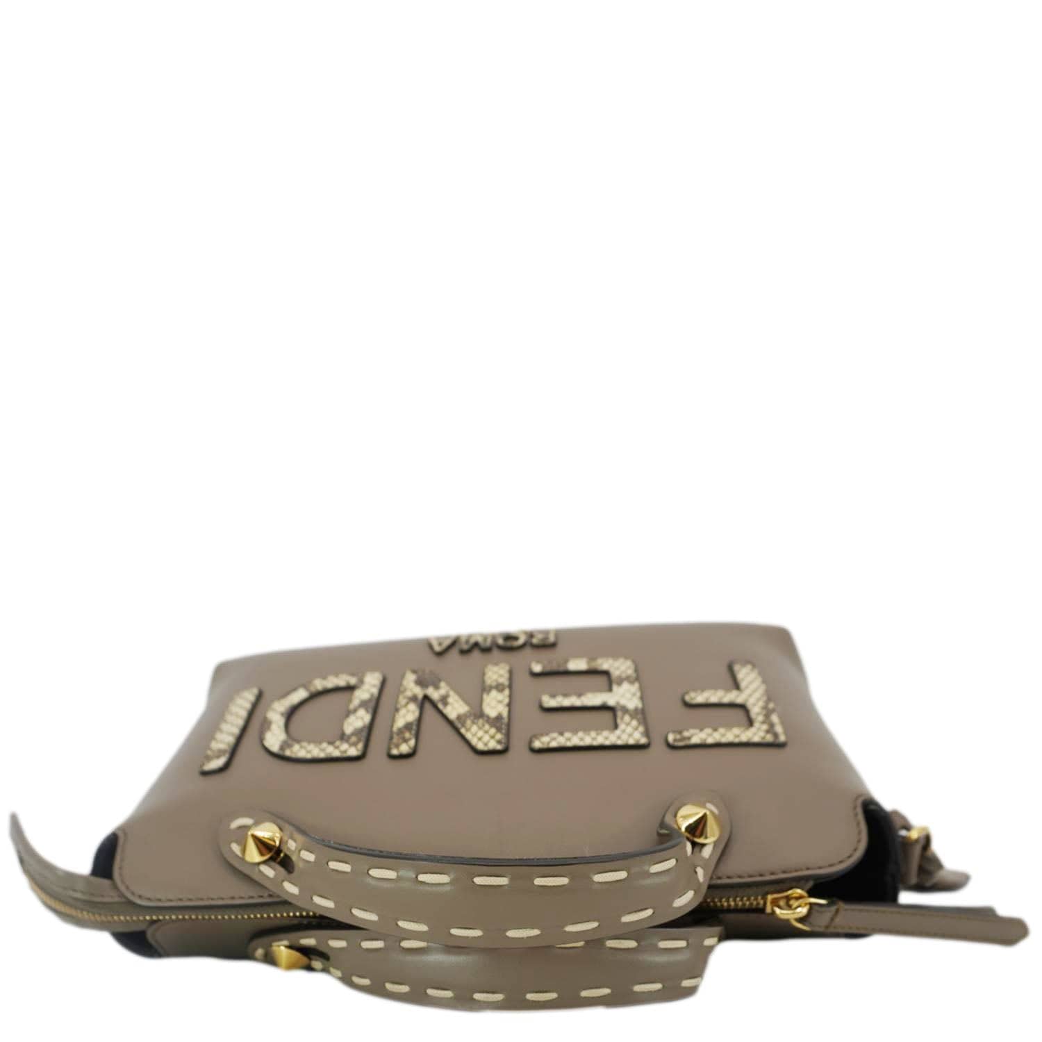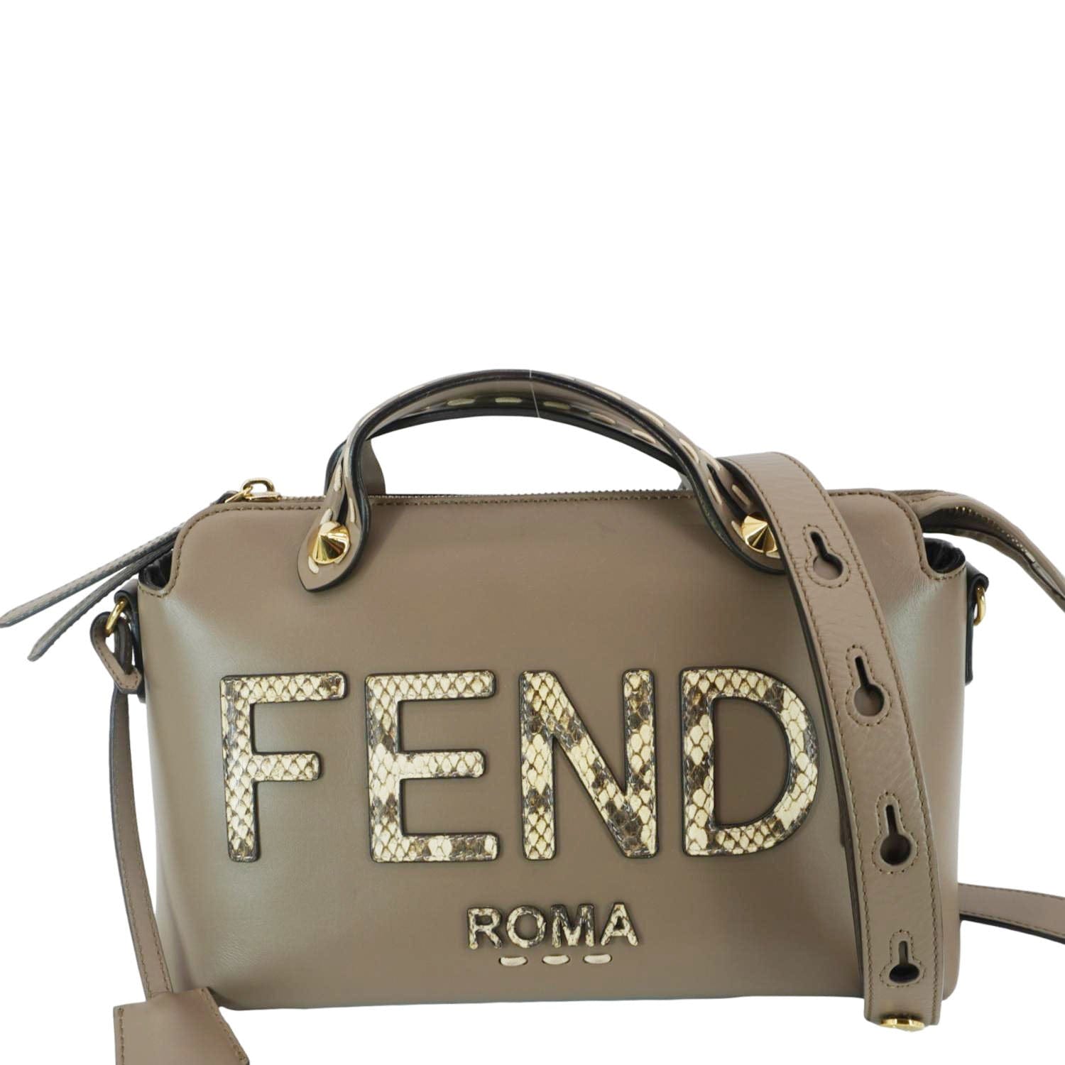 FENDI By The Way Leather Python Print Logo Boston Beige Bag