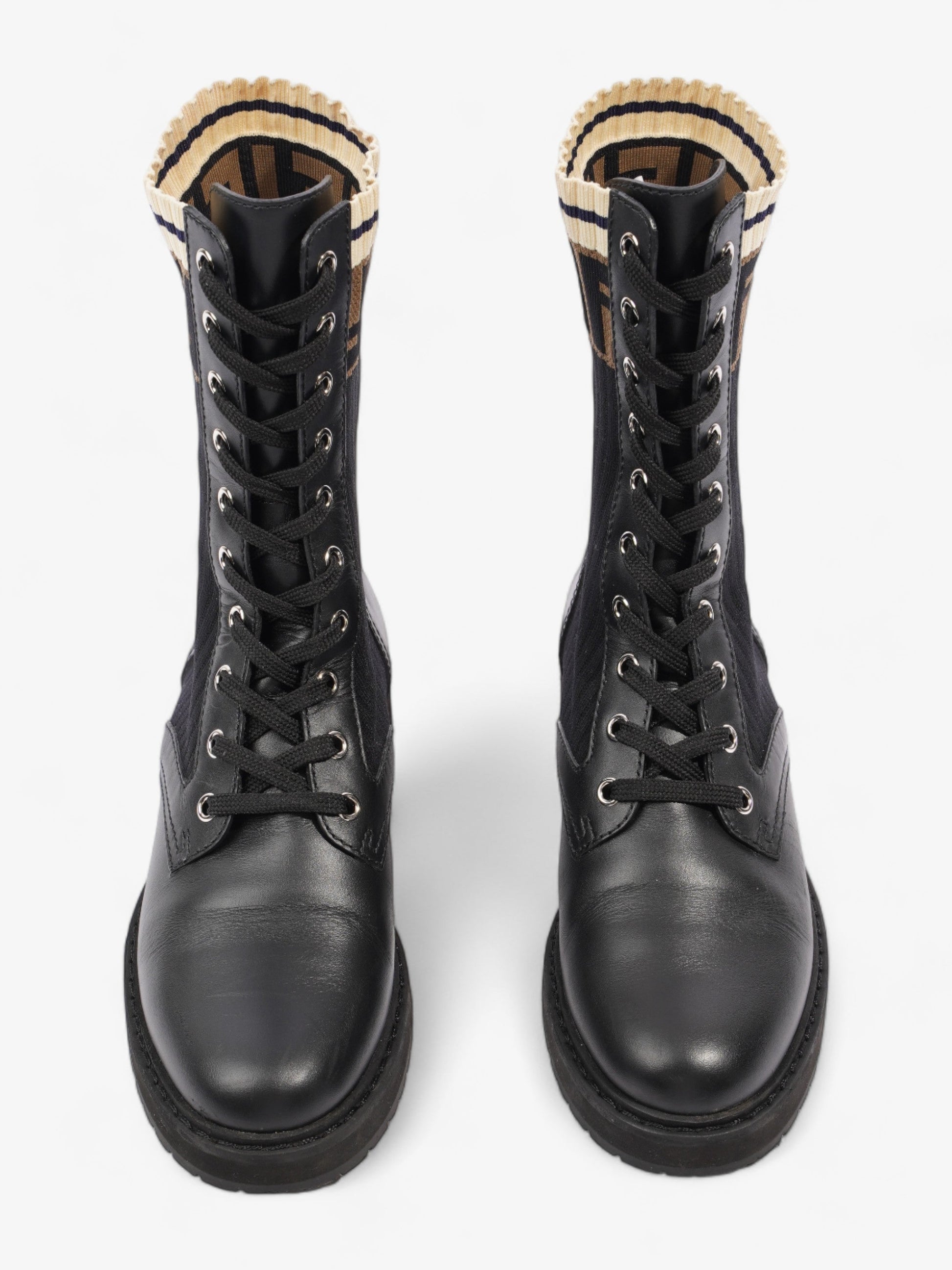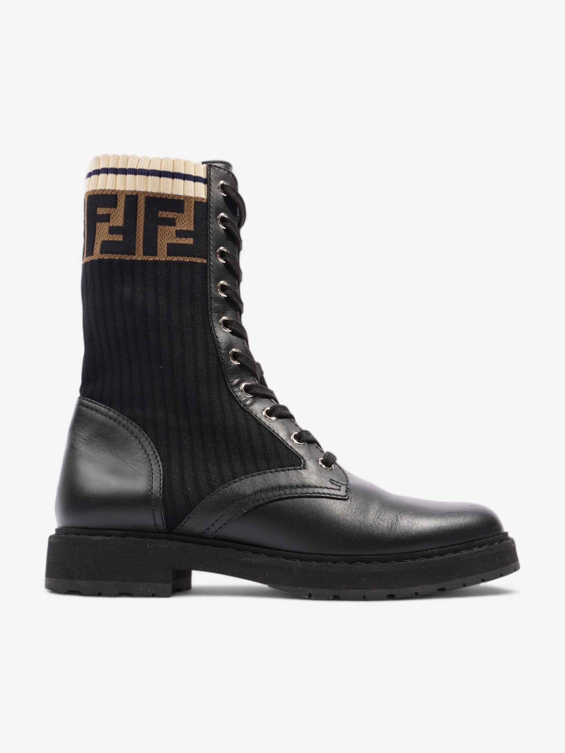 Fendi Rockoko Boots Black / Beige Leather EU 37.5 UK 4.5