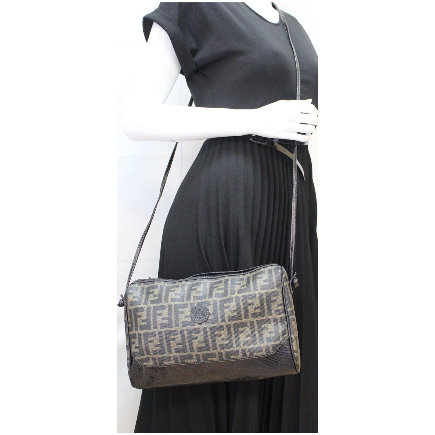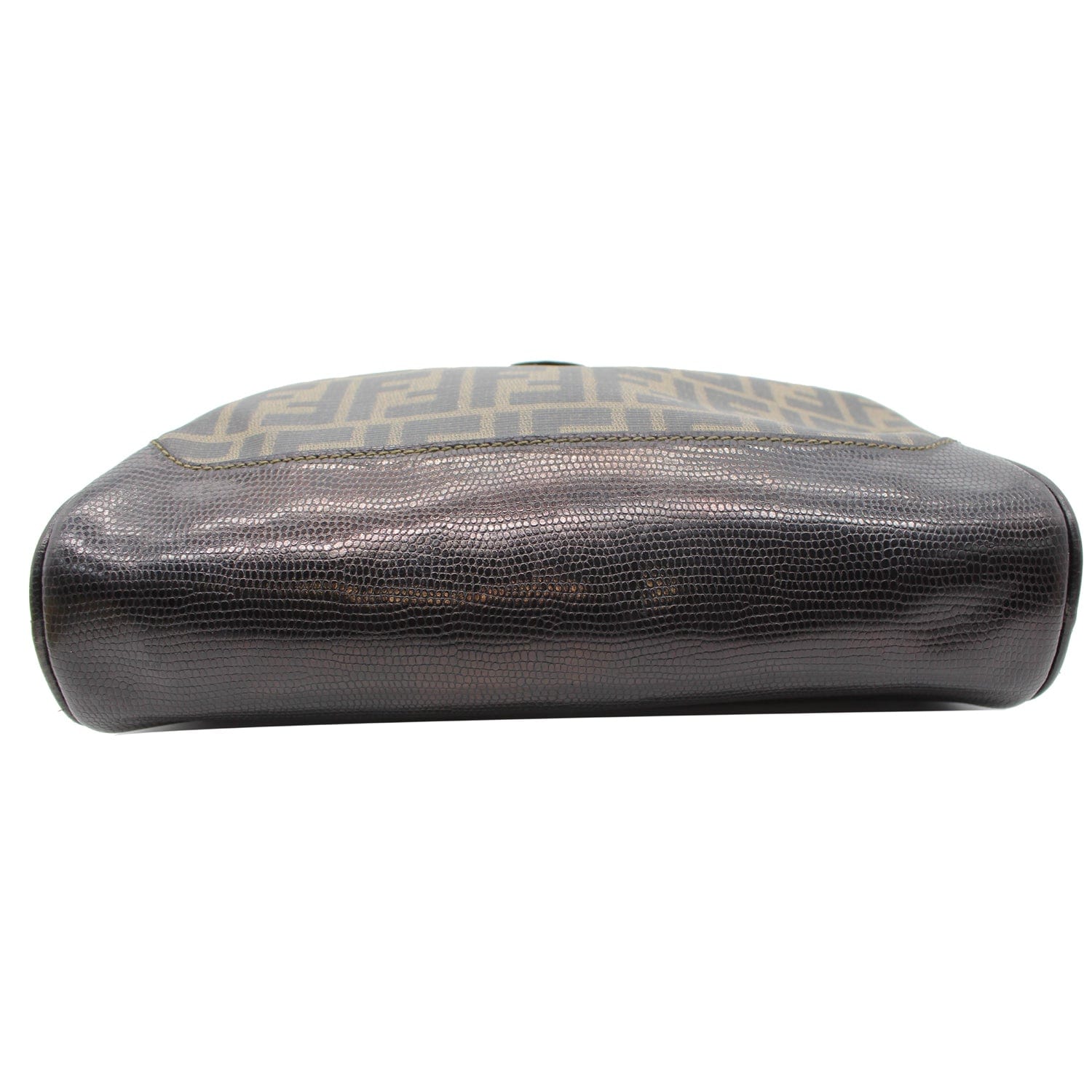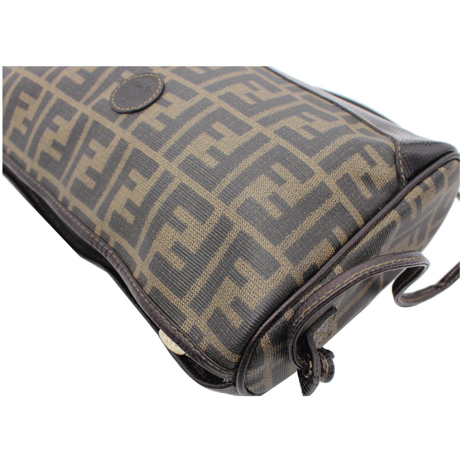 FENDI Roma Coated Canvas Leather Crossbody Bag Brown