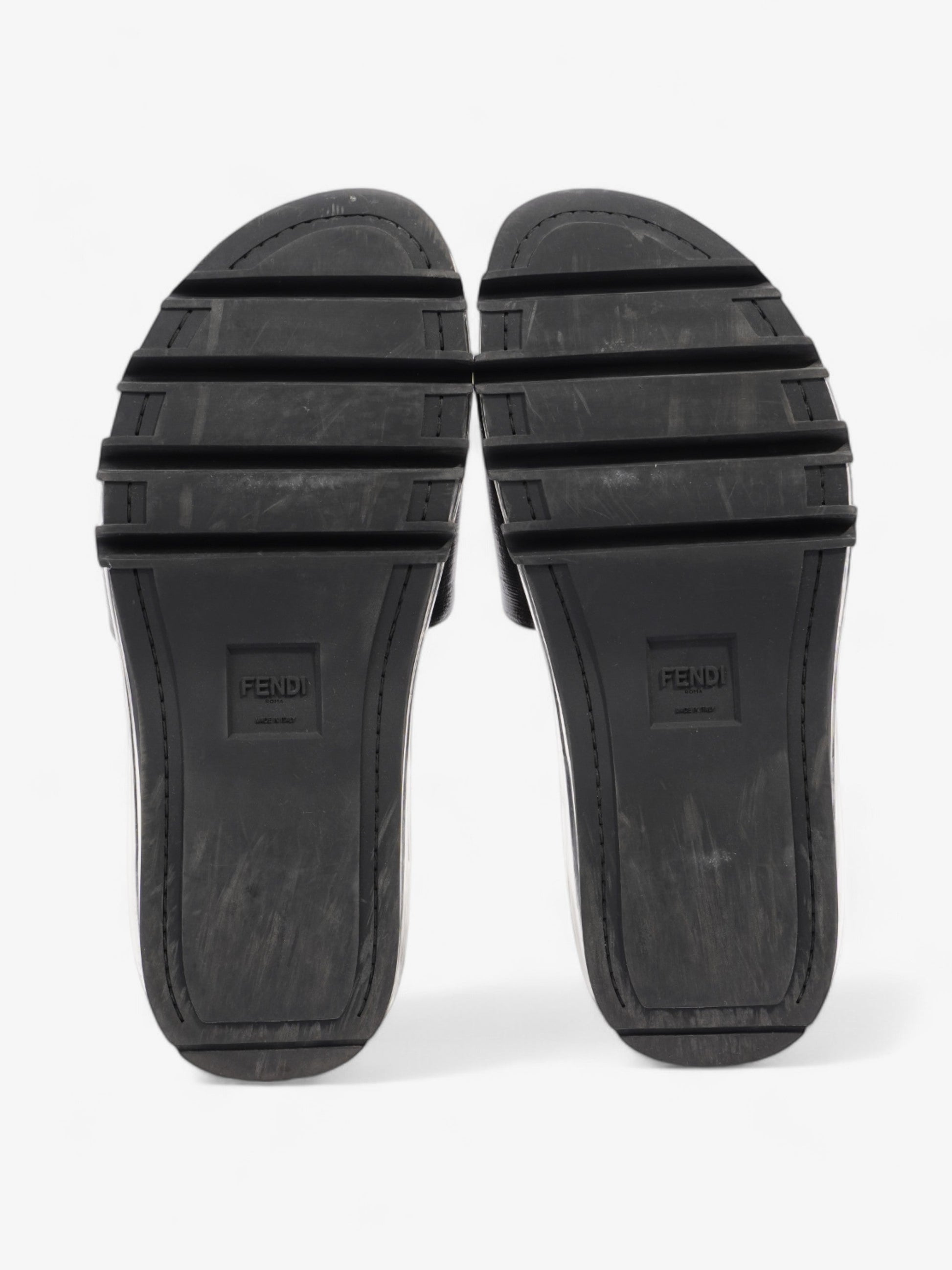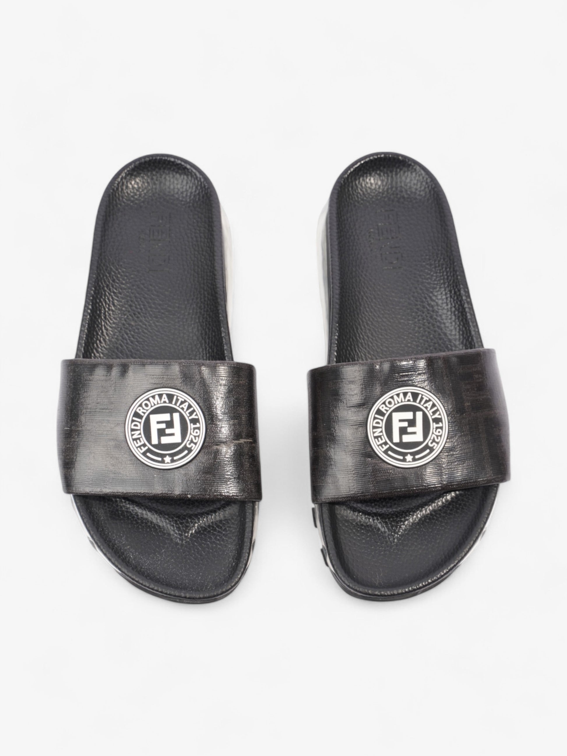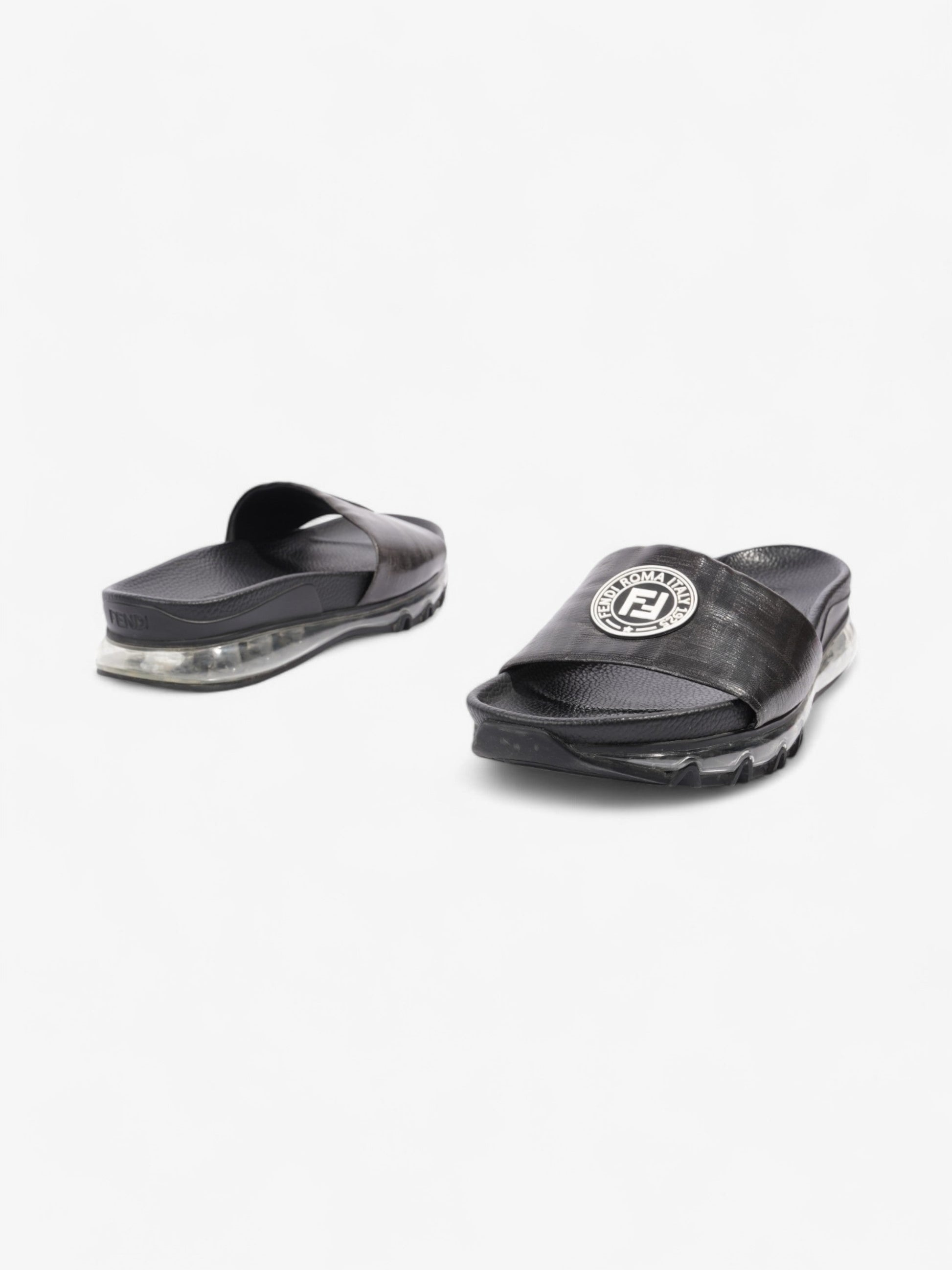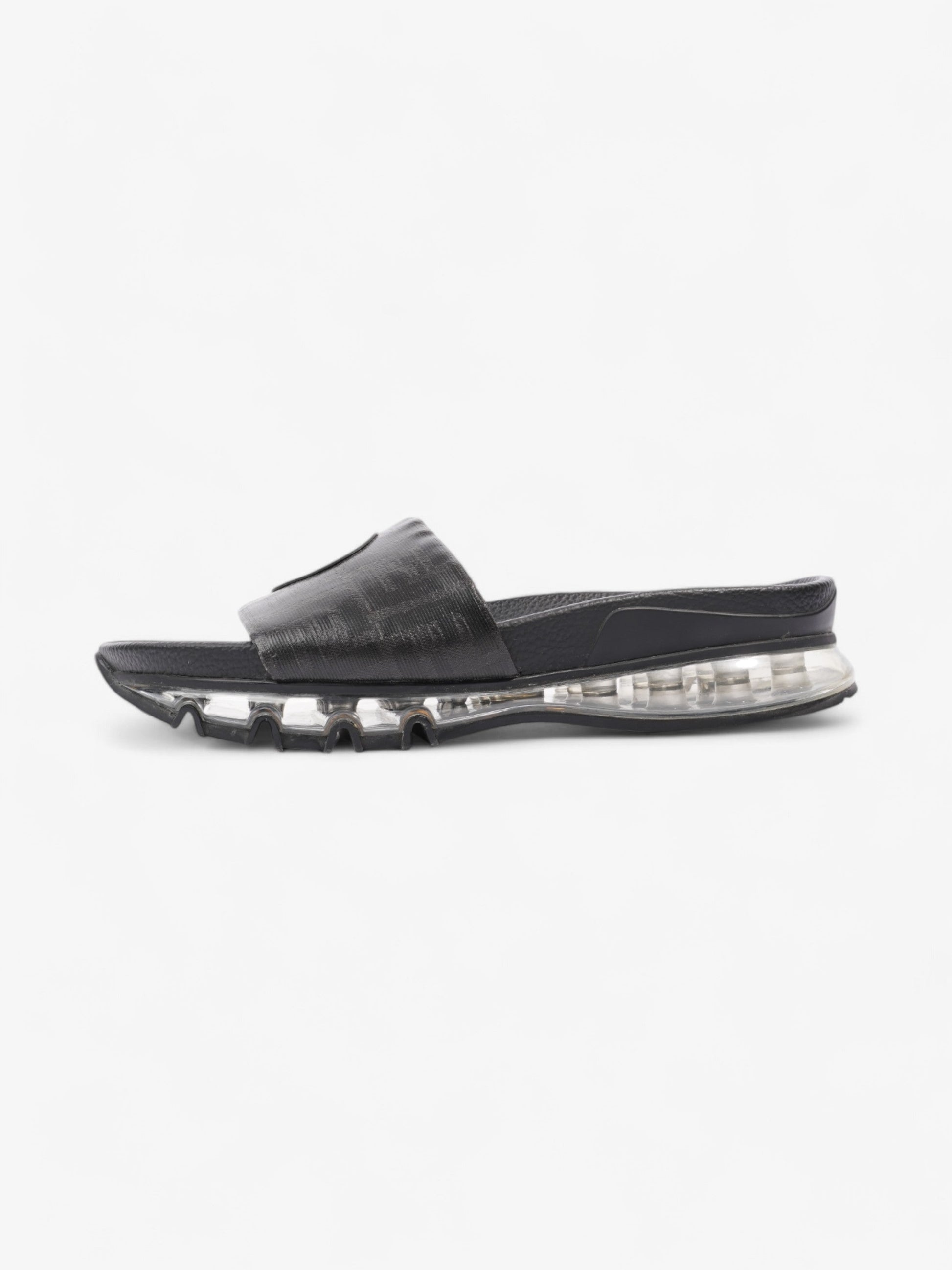 Fendi Roma Logo Clear Sole Slides Black Rubber EU 43 UK 9