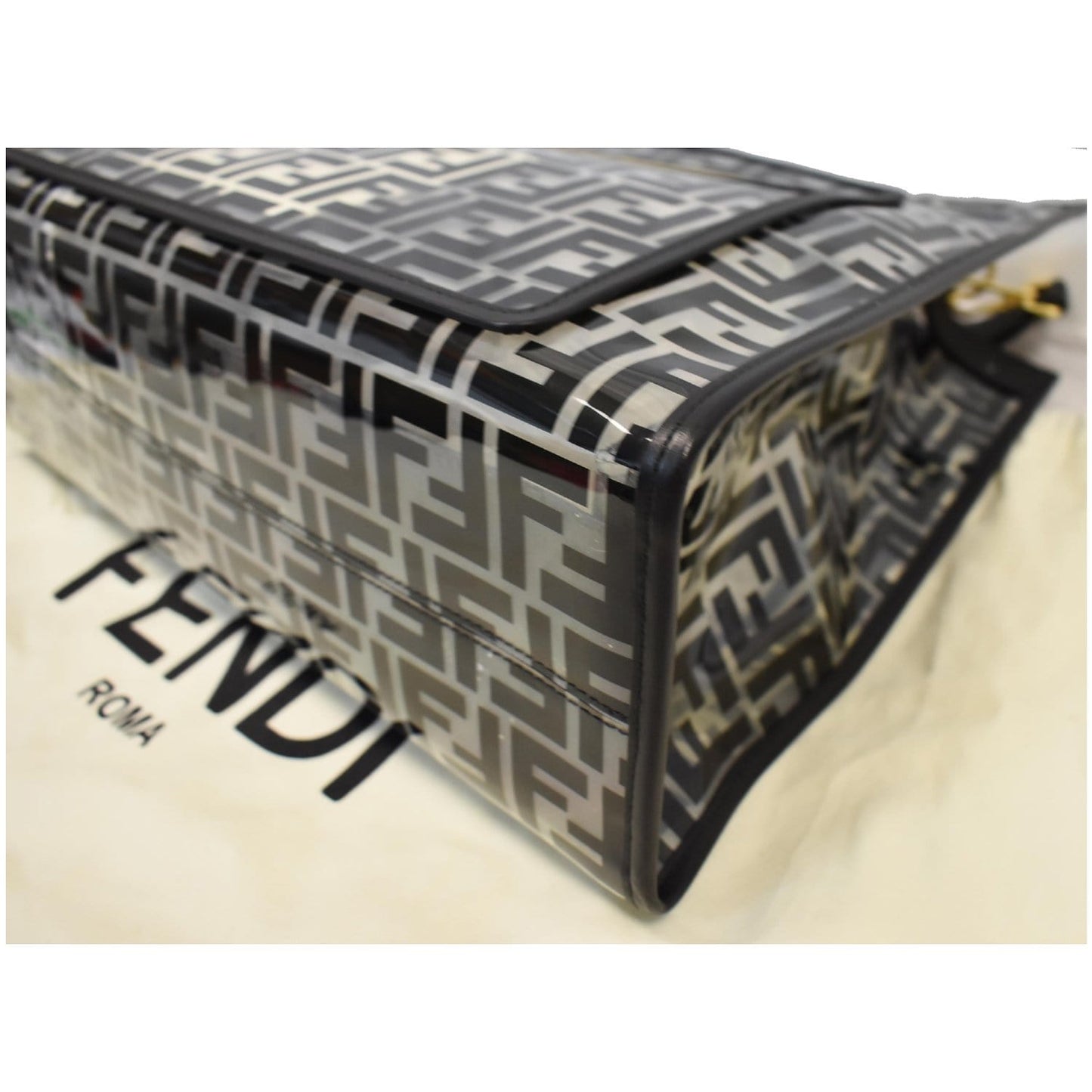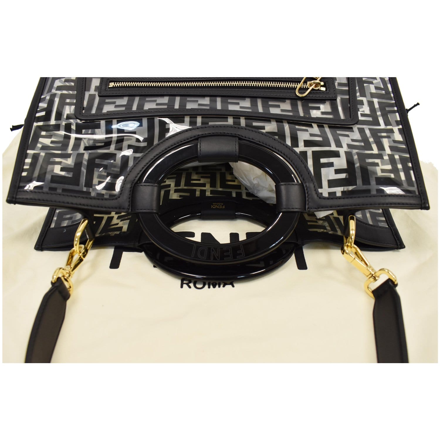 FENDI Runaway Shopper Medium TPU FF Leather Tote Bag Black