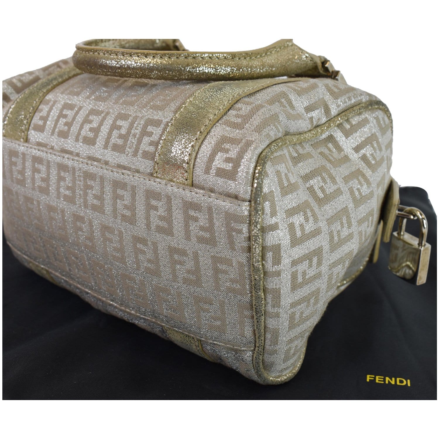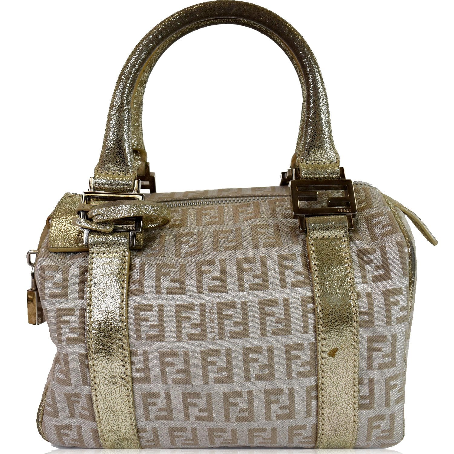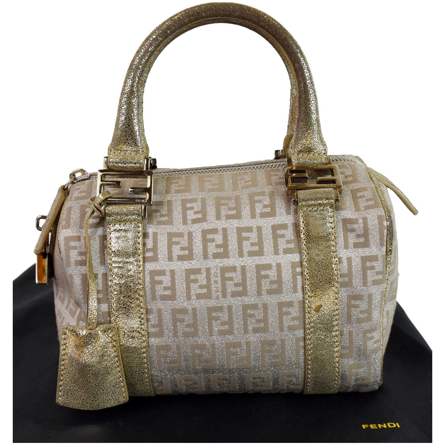 FENDI Selleria Zucca Canvas Leather Boston Bag Gold