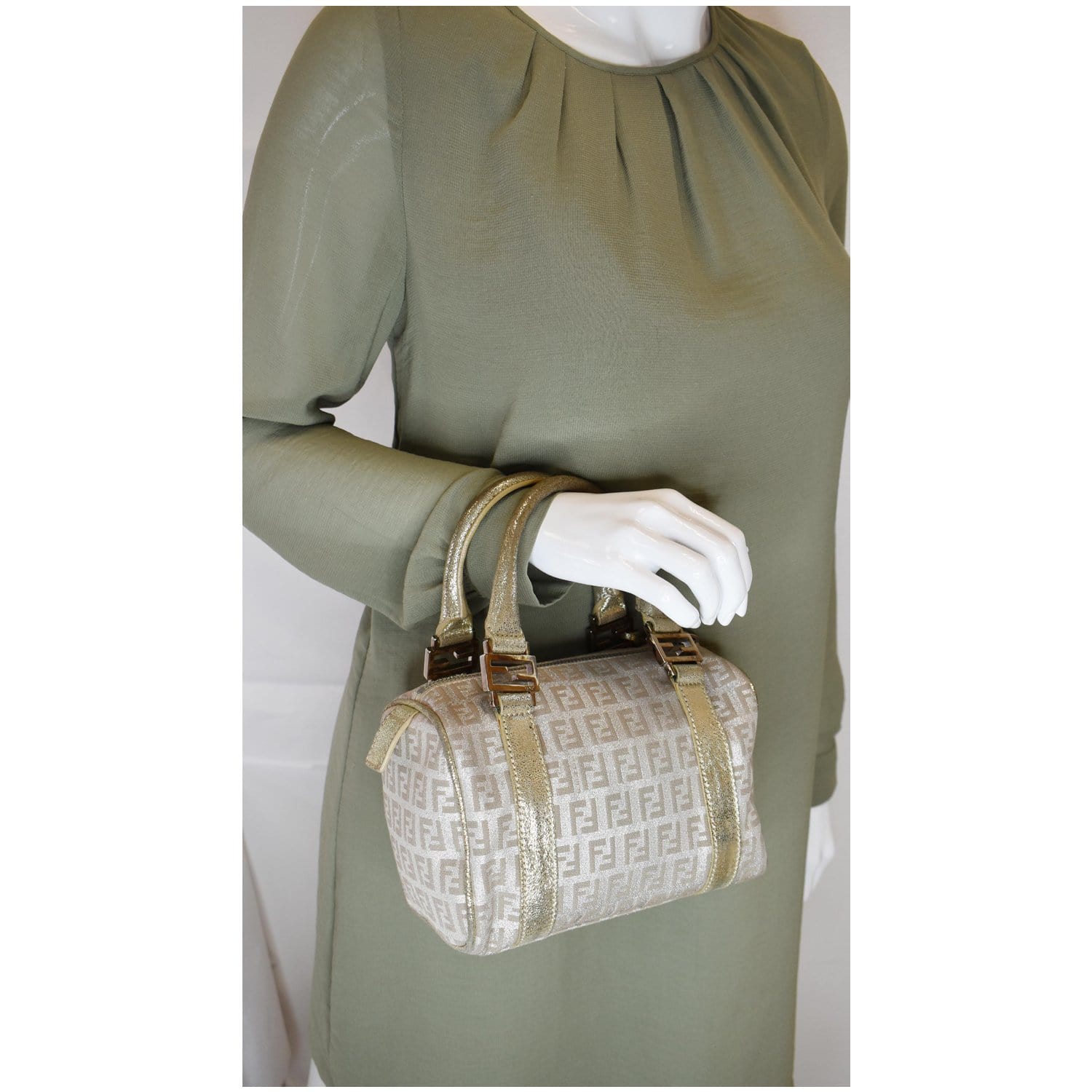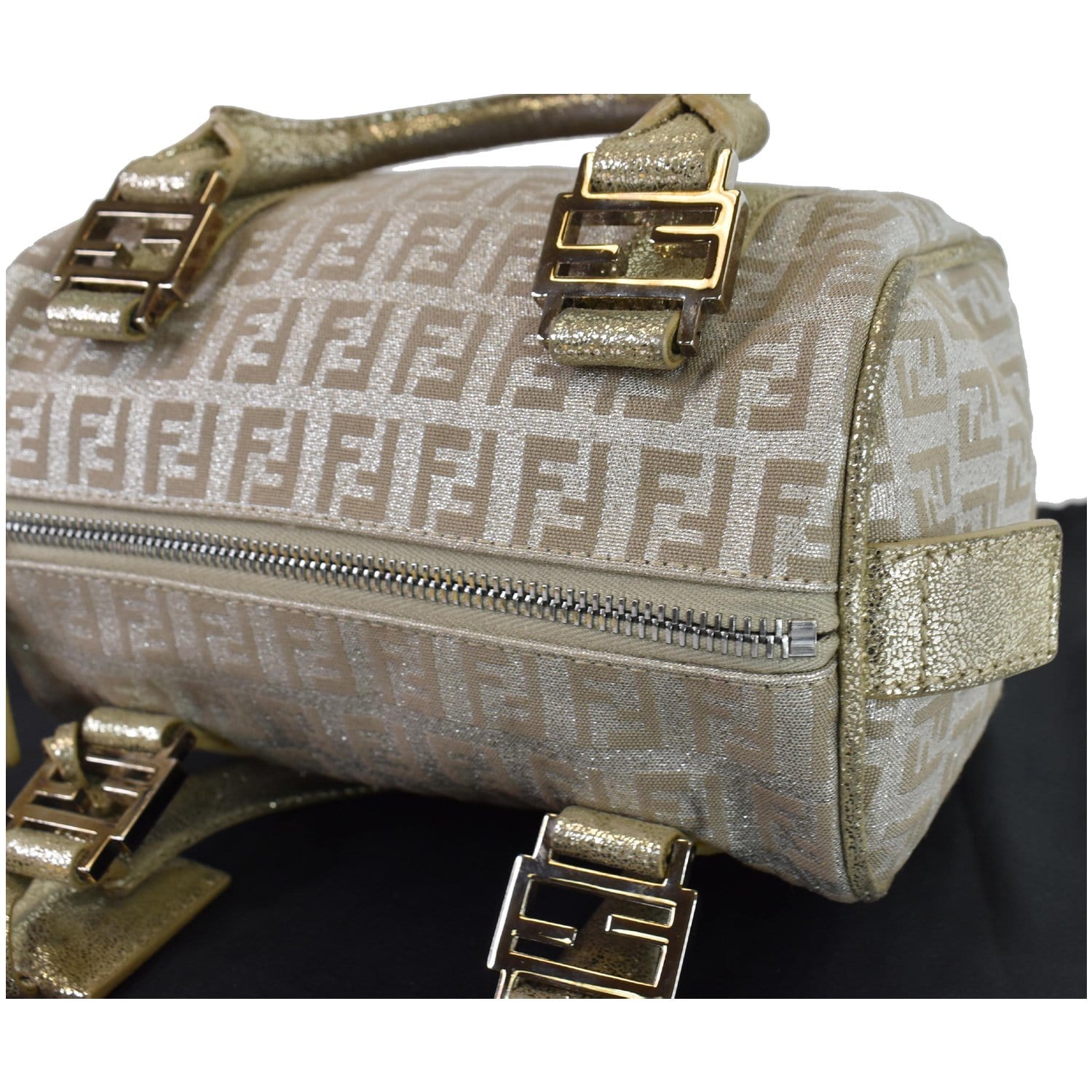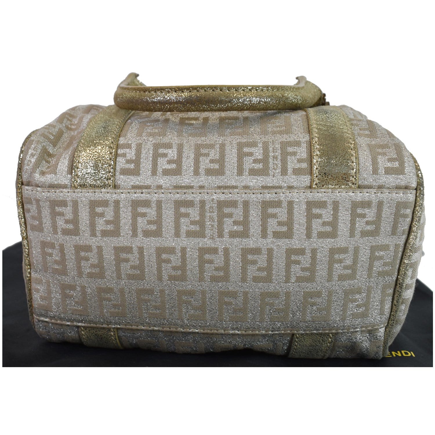 FENDI Selleria Zucca Canvas Leather Boston Bag Gold