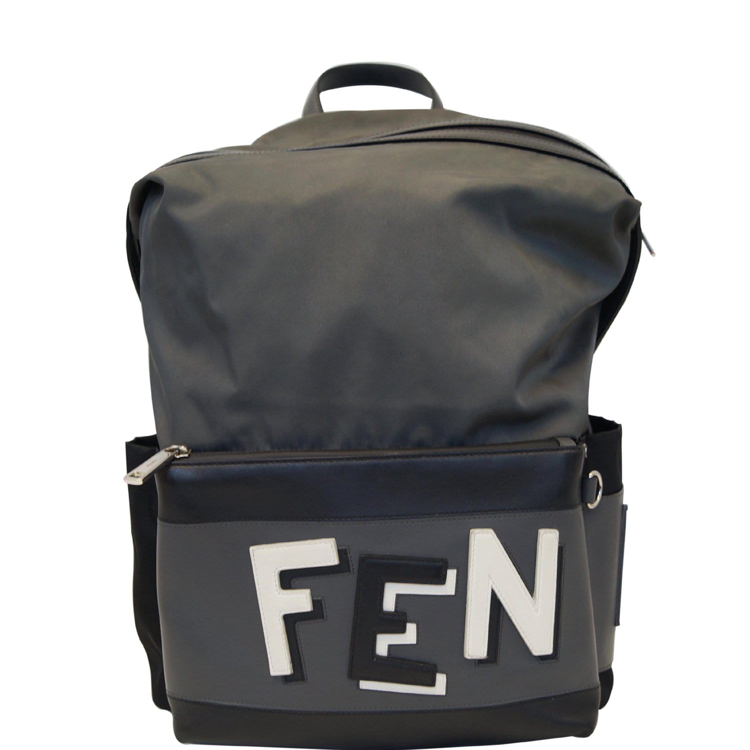 FENDI Shadow Logo Nylon Fabric Backpack Bag Grey/Black
