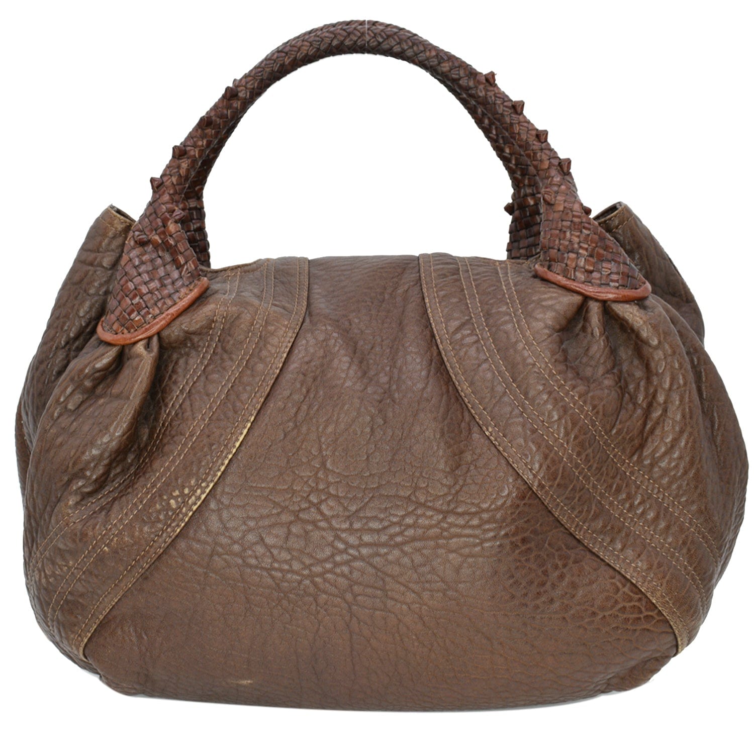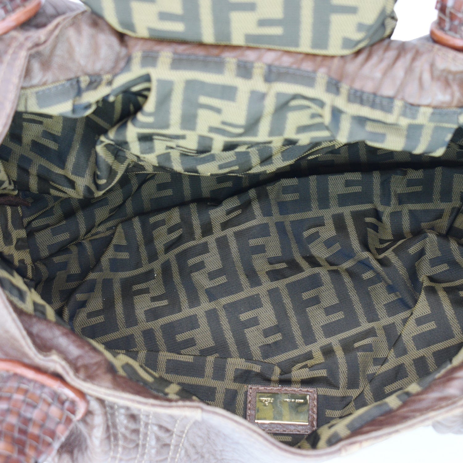 FENDI Spy Nappa Leather Satchel Bag Brown 8BR511