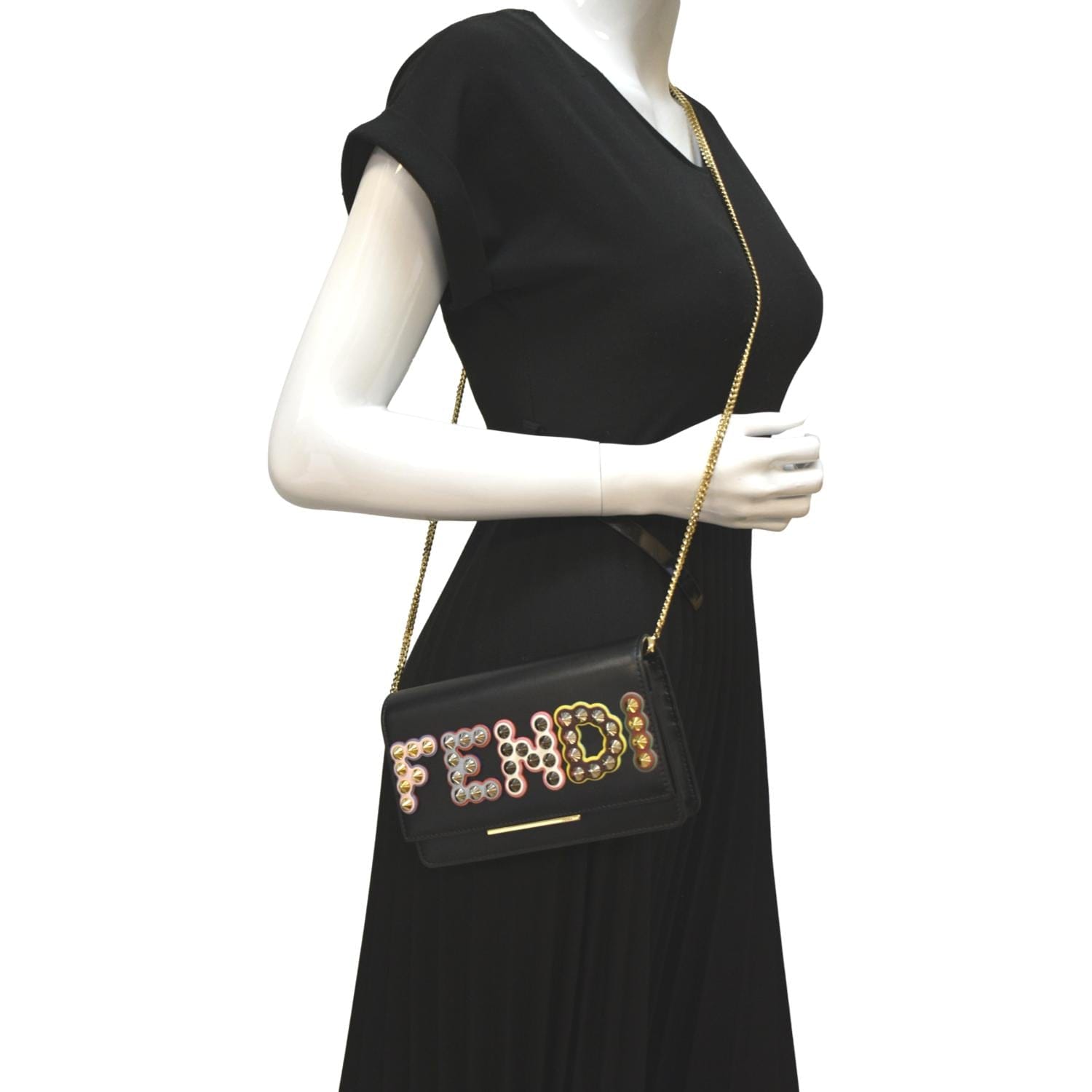 FENDI Studded Logo Woc Leather Crossbody Clutch Black
