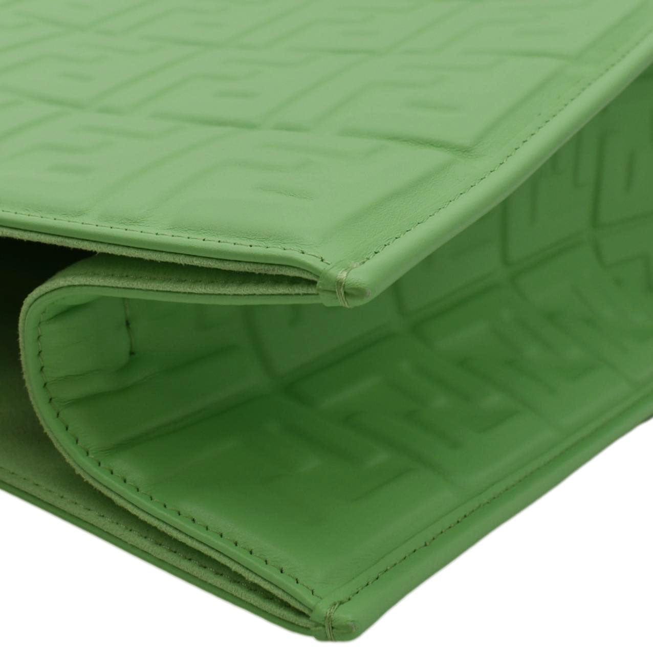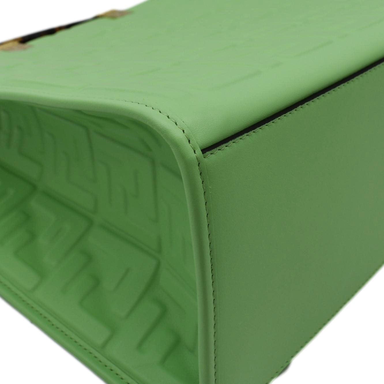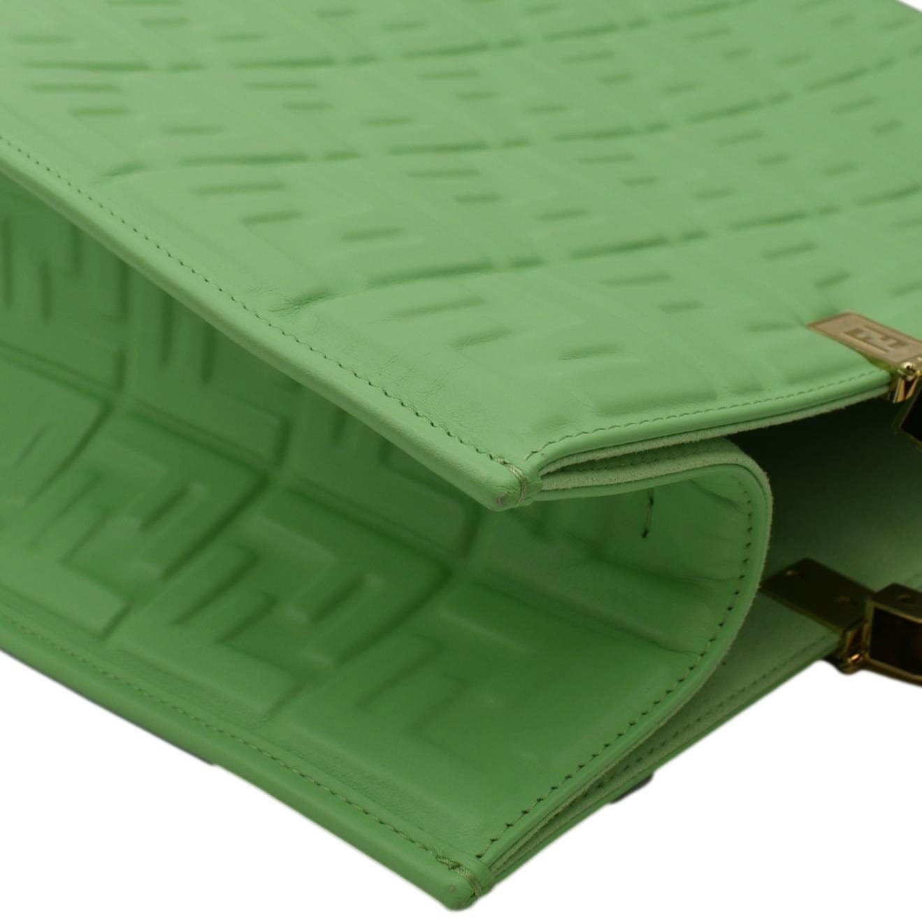 Elevate your ensemble with the FENDI Sunshine Medium Embossed Leather Shopper Tote Bag in refreshing Green. This chic accessory combines luxurious embossed leather with FENDI's signature style, making it a statement piece for any fashion enthusiast.