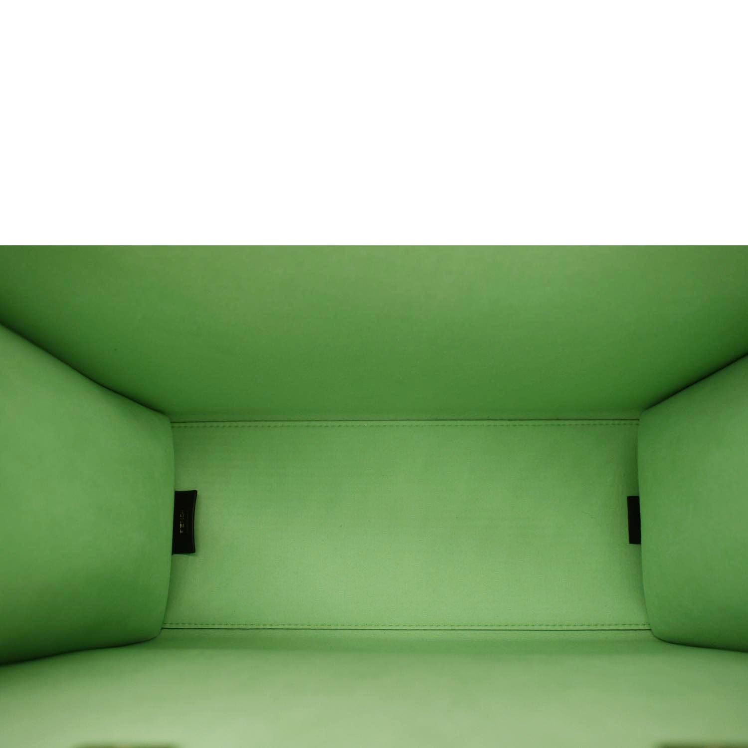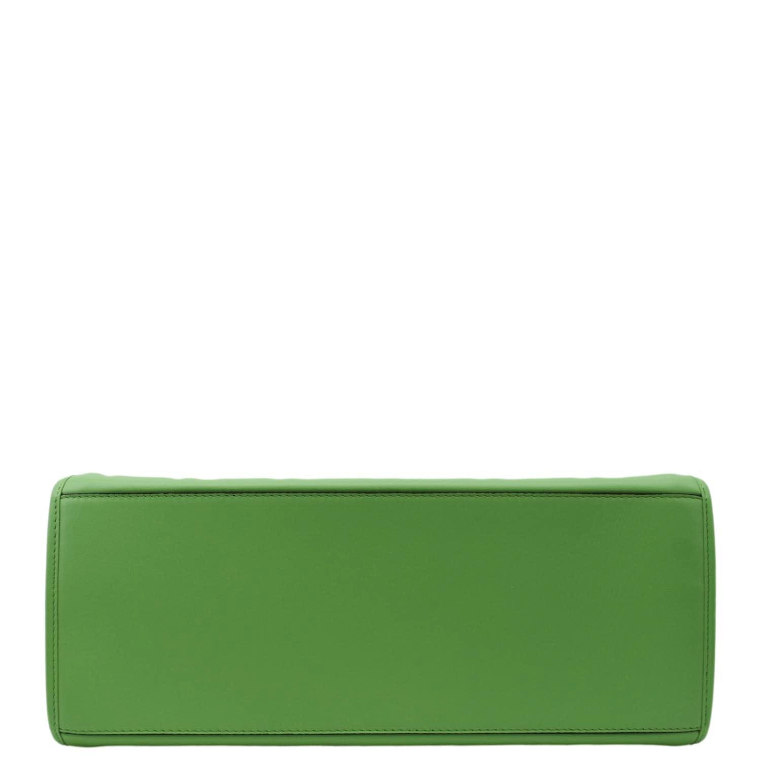 FENDI Sunshine Medium Embossed Leather Shopper Tote Bag Green