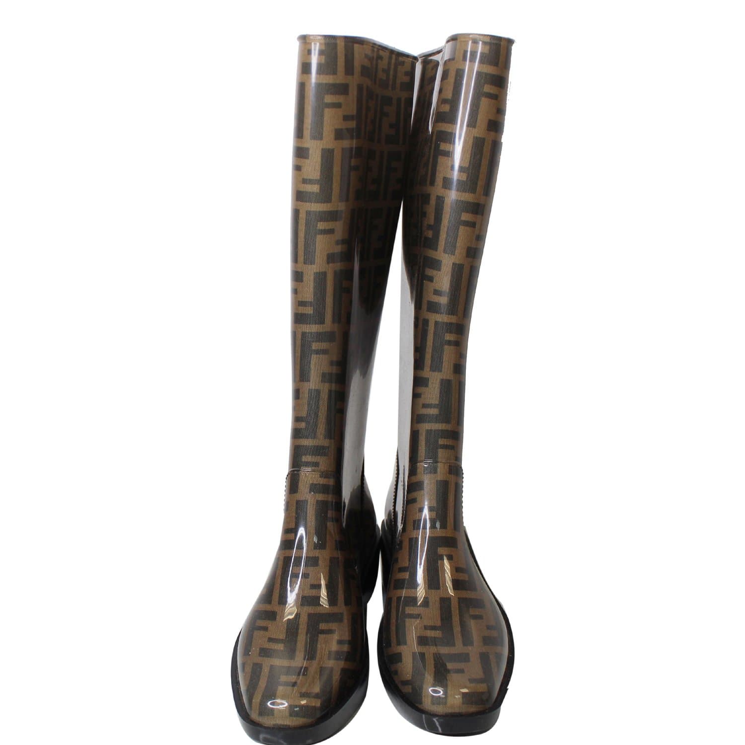 FENDI Tobacco Zucca Rubber Wedge Rain Boots Brown US 8
