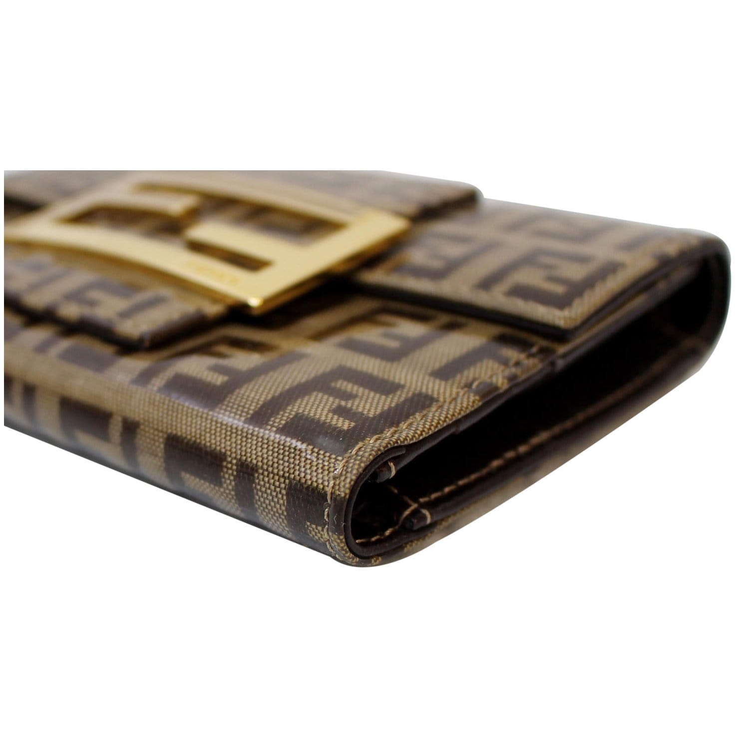 FENDI Trifold Zucca Vinyl Coated Wallet Brown