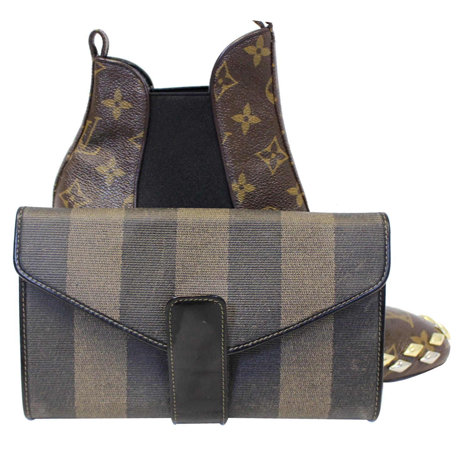 FENDI Vintage Pequin Stripe Wallet Brown