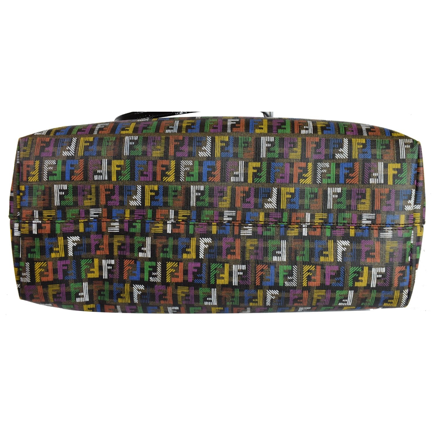 FENDI Zucca Print Roll Canvas Shoulder Tote Bag Multicolor