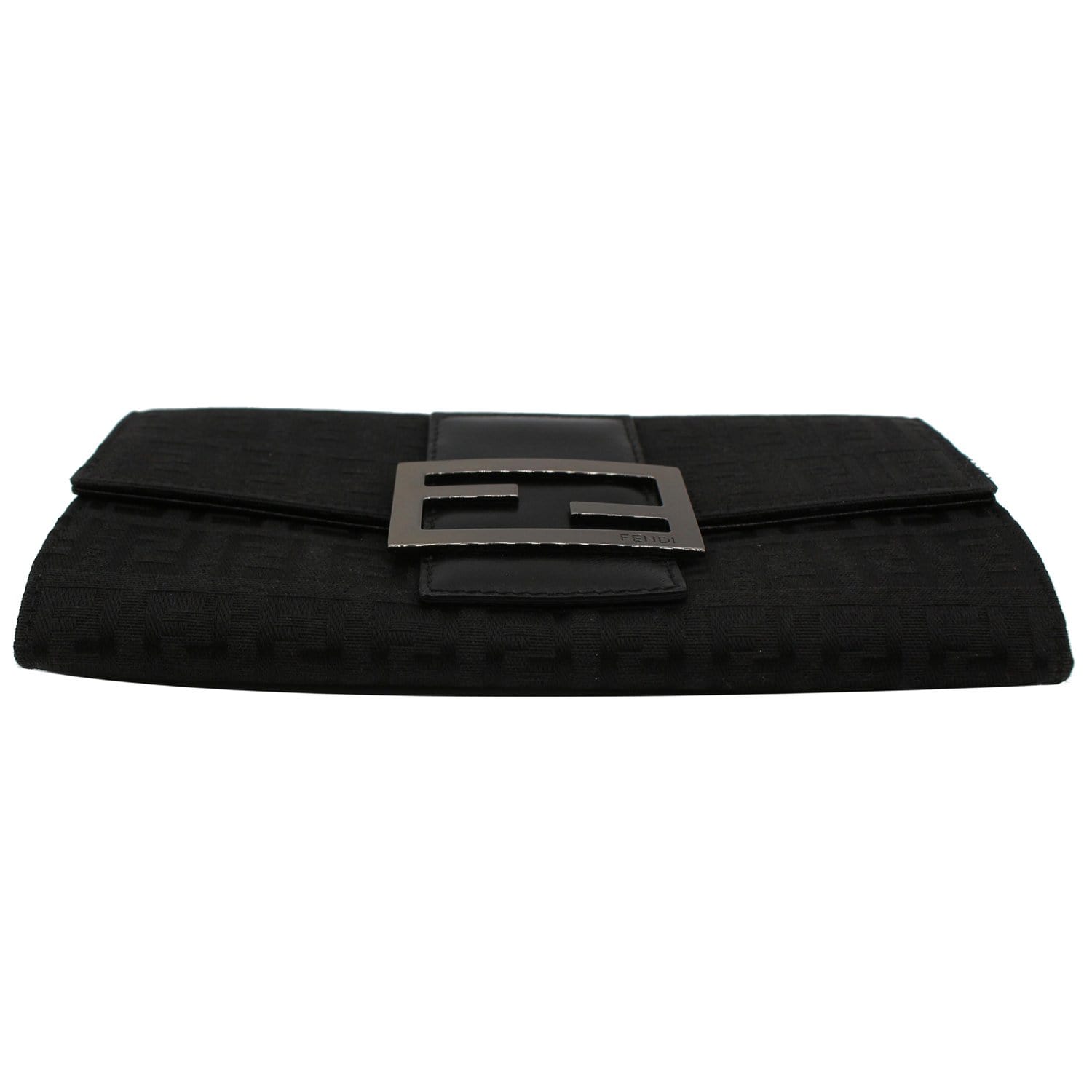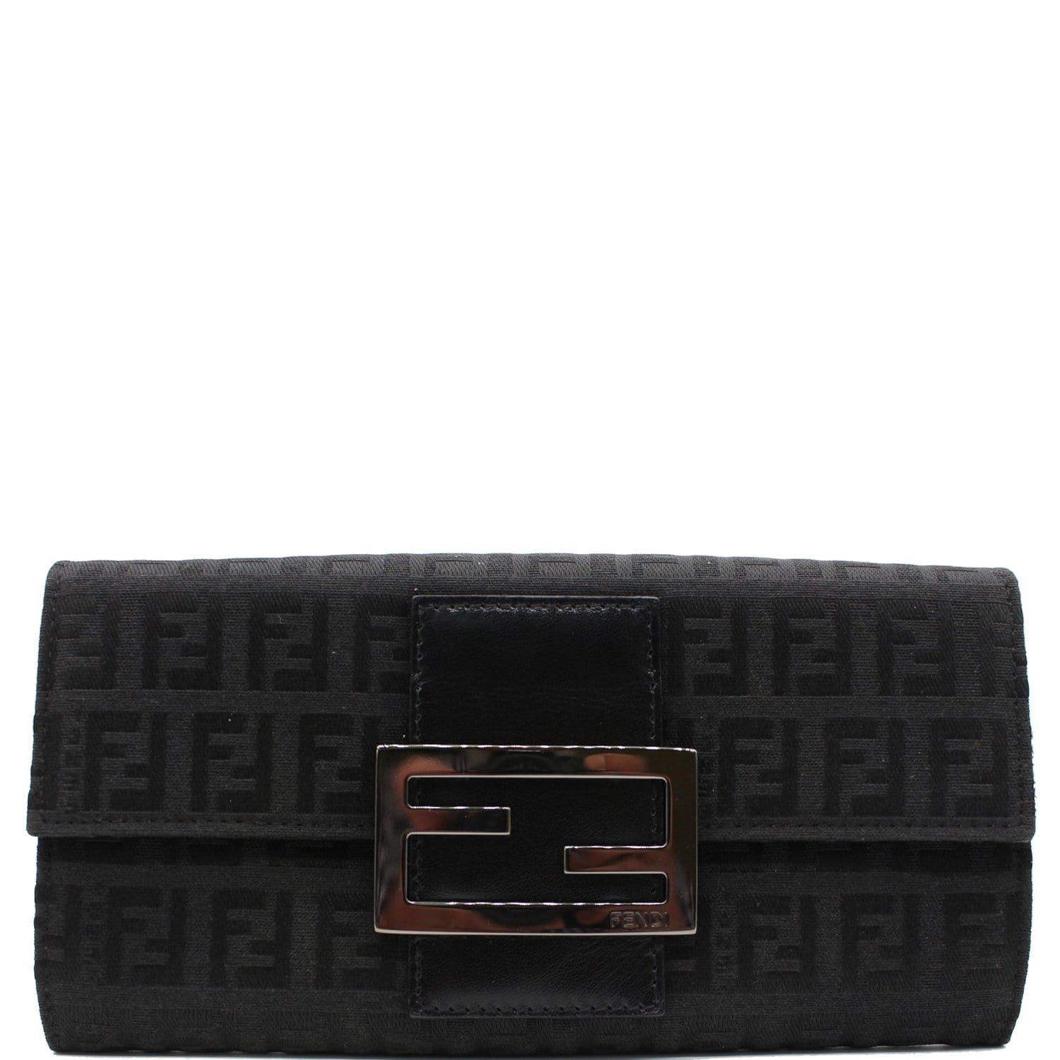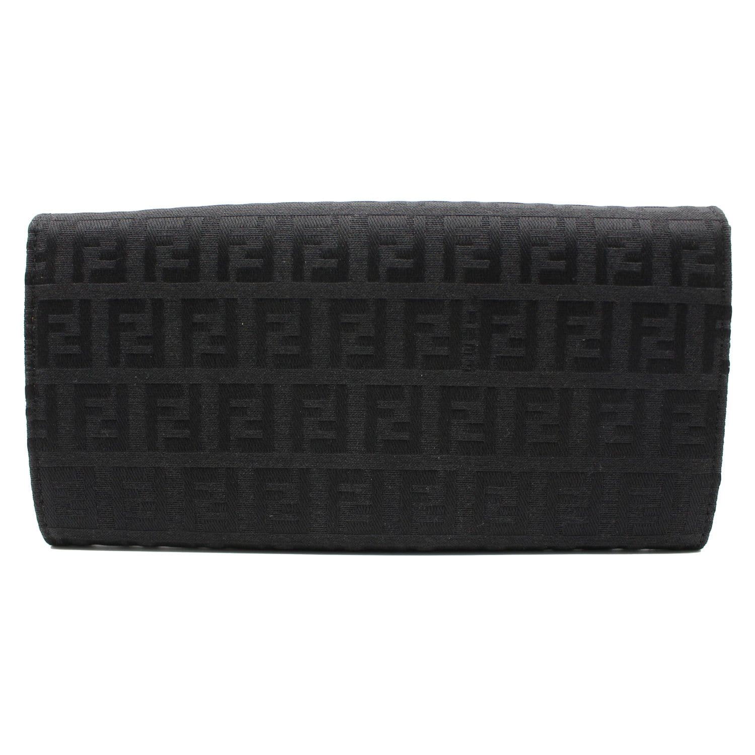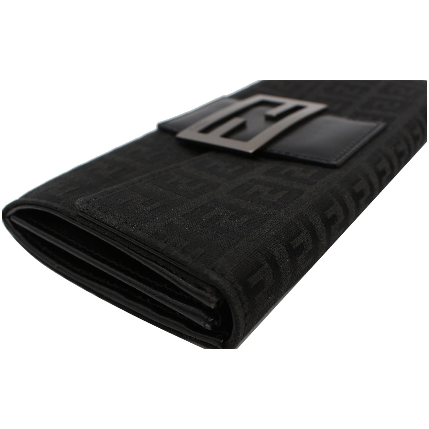 FENDI Zucchino Monogram Canvas Long Bi-Fold Wallet Black