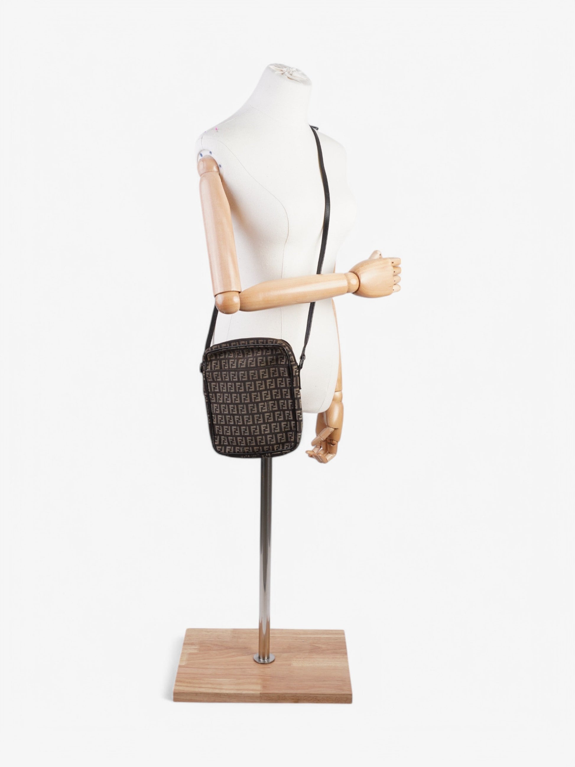 Fendi Zucchino Shoulder Bag Brown Canvas