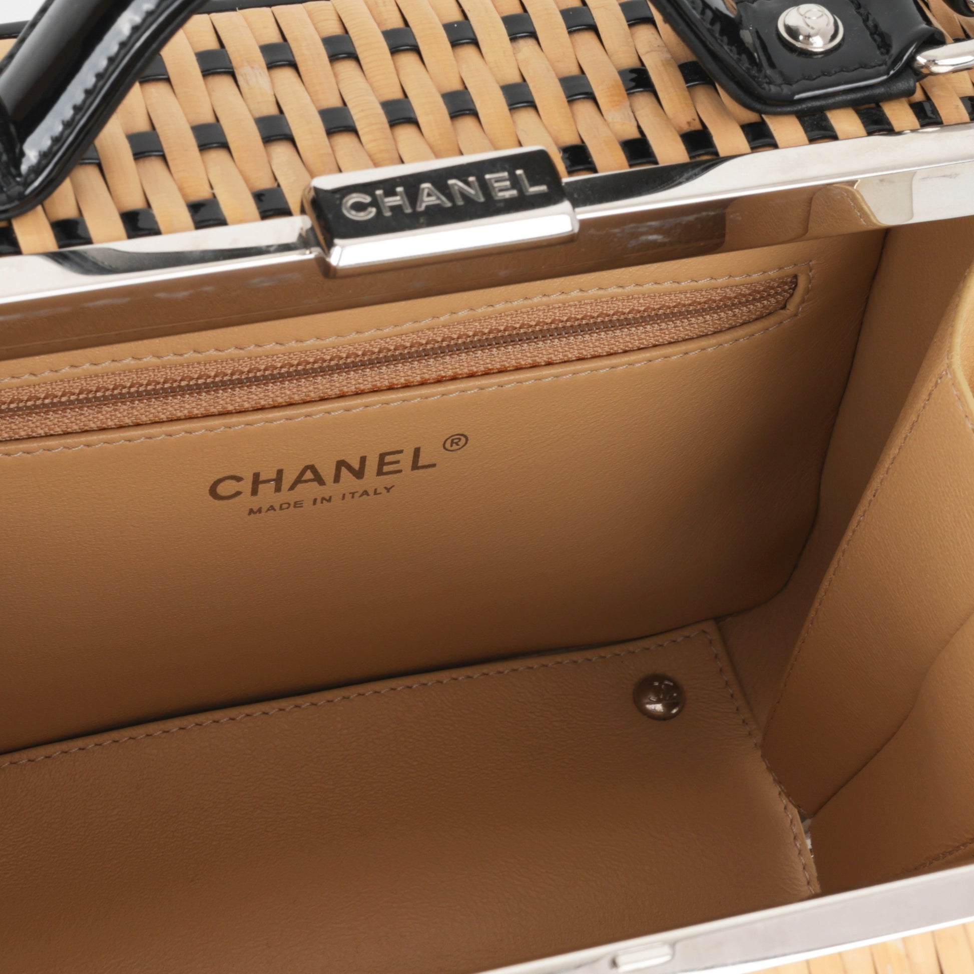 - CC logo in black patent leather
