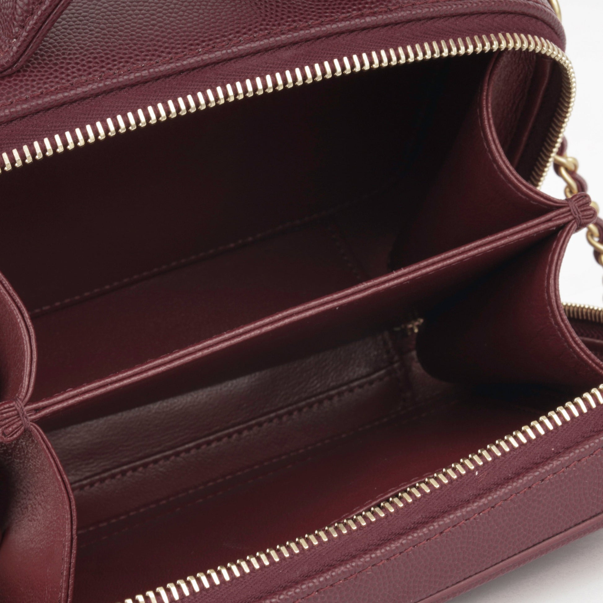 - Quilted burgundy caviar leather