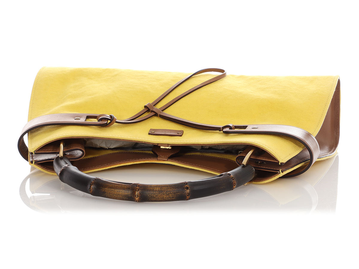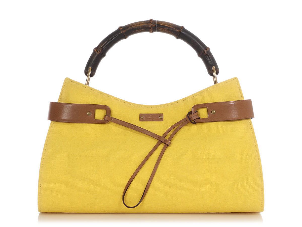 Gucci Yellow Canvas Bamboo Shoulder Bag