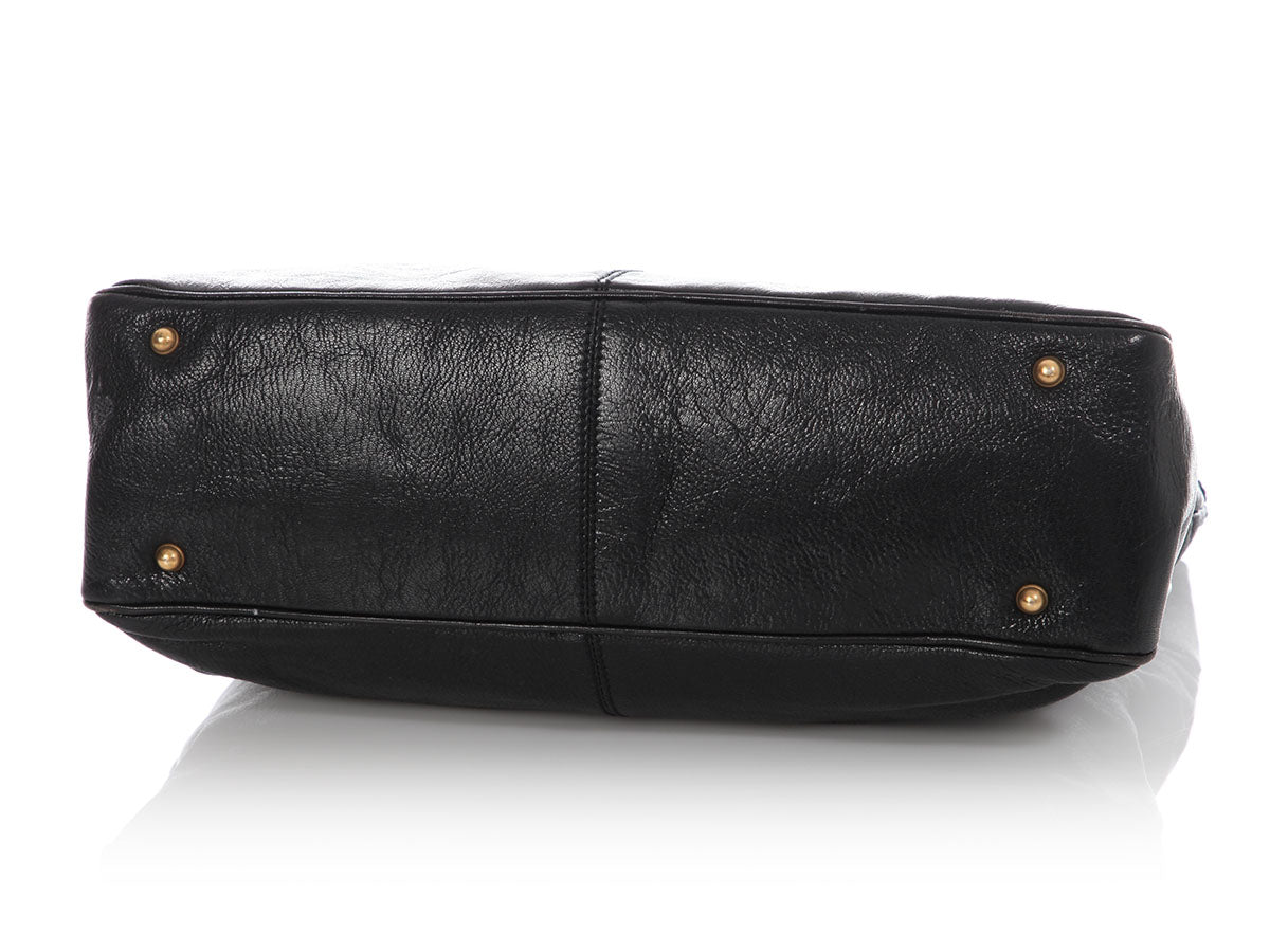 They say blondes have more fun, and Gucci�s Black Studded GG Blondie Bag is proof of that! Made of thick, crinkled black leather with a leather and brushed gold GG emblem on the front, the open top leads to a black fabric interior with one zipped pocket. In very good condition, the hardware has scratches, the corners and edges are rubbed, the handle glazing is starting to crack, there are some white marks on the bottom, rubbing and marks inside and it has a faint perfume smell. With a 7.75-inch drop to the handles, it�s roomy enough for a small laptop, making it perfect for work or play!