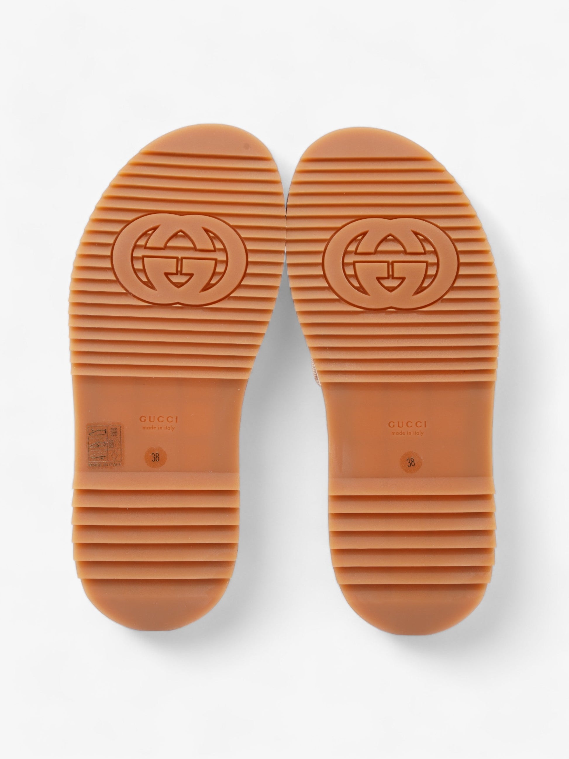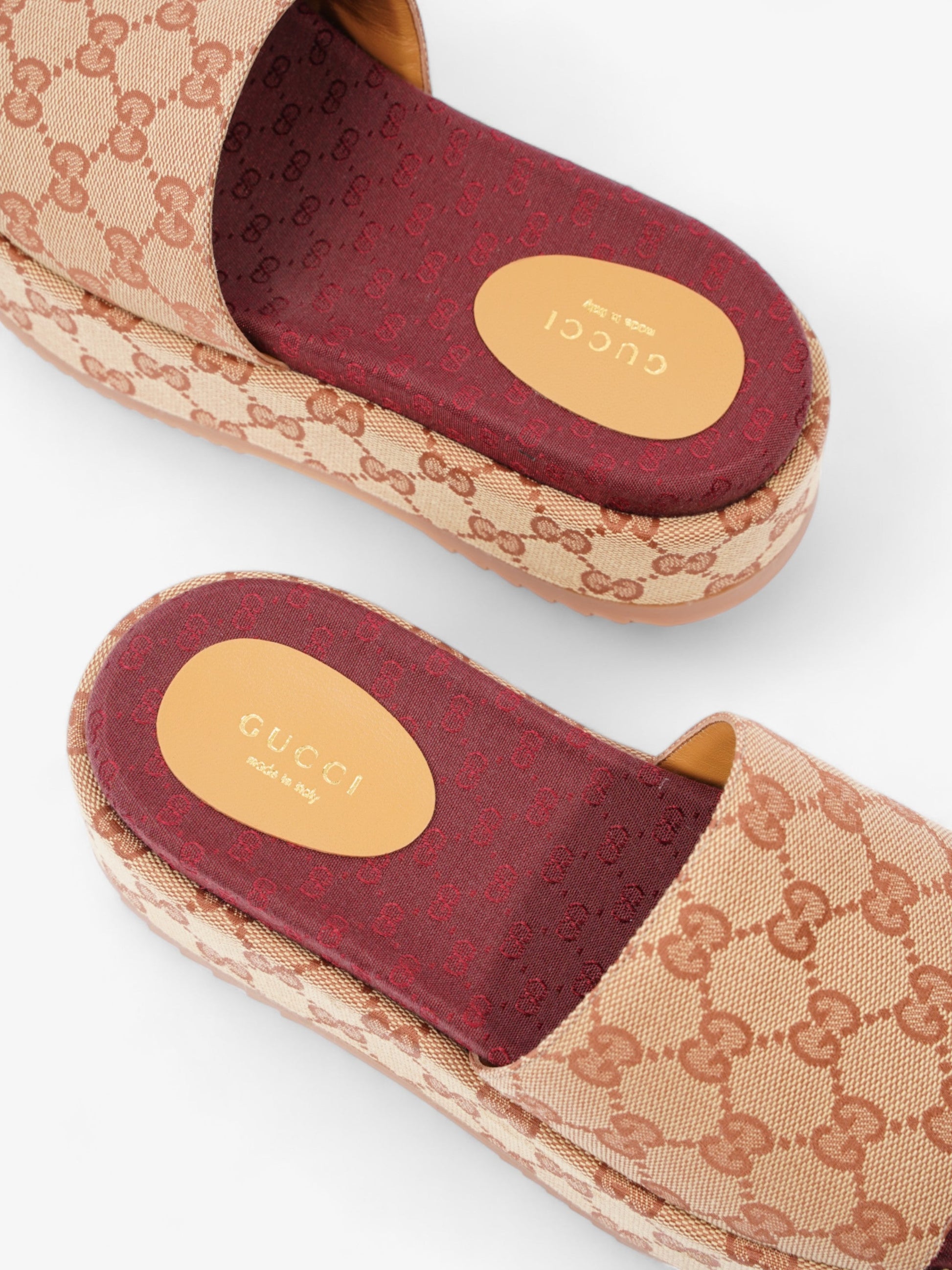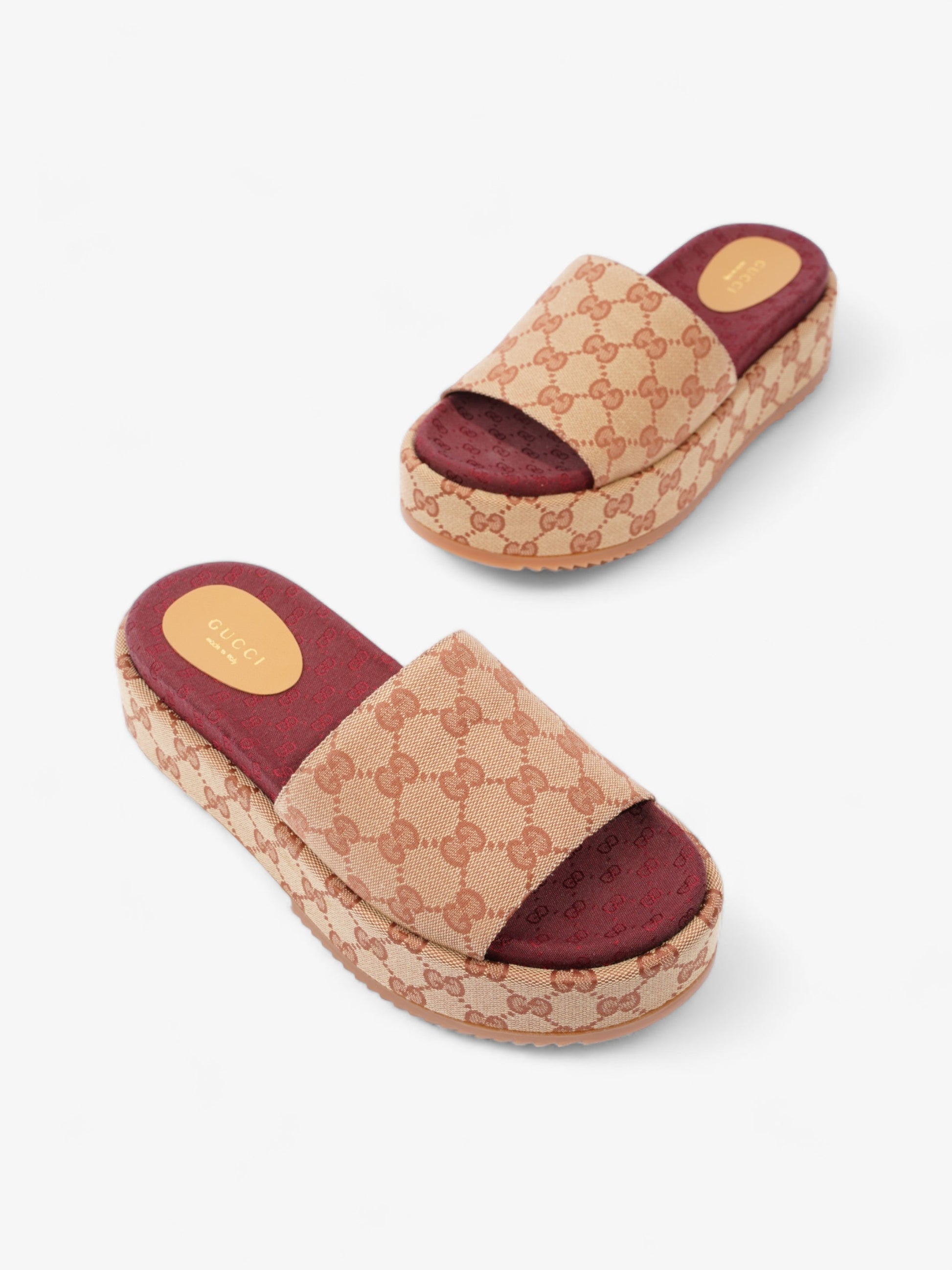 Gucci GG Canvas Platform Sandal Gold / Burgundy Canvas EU 38 UK 5