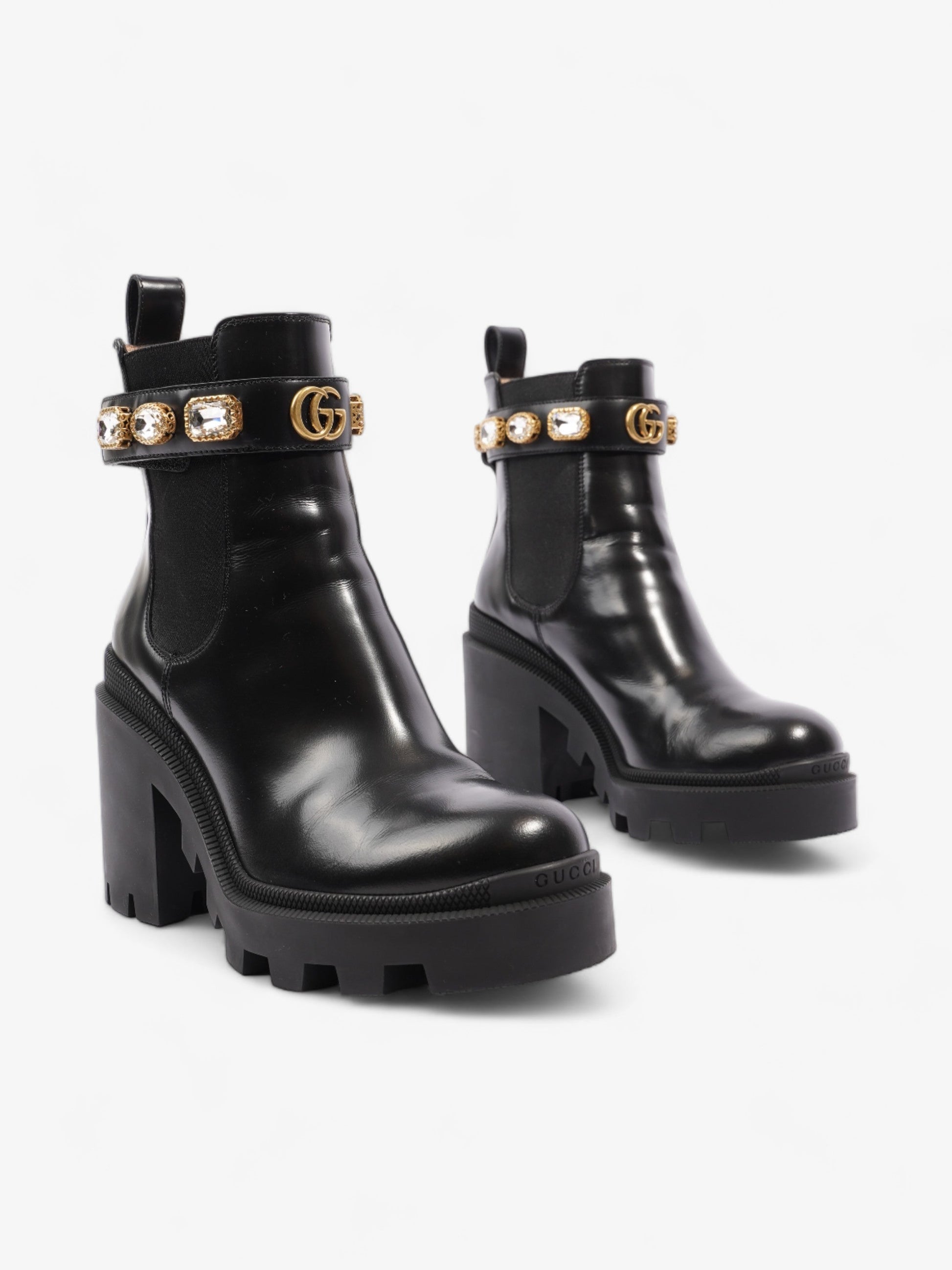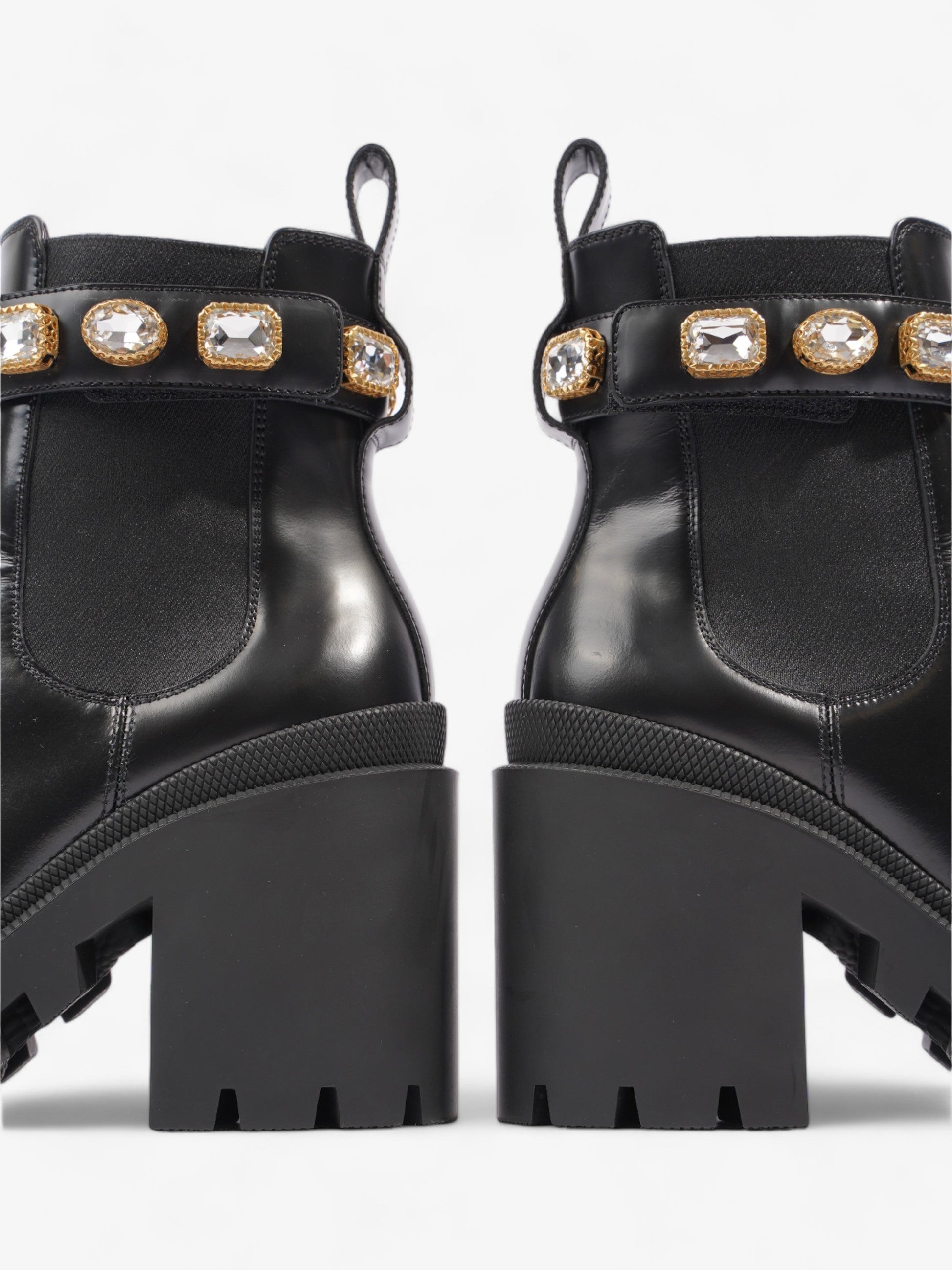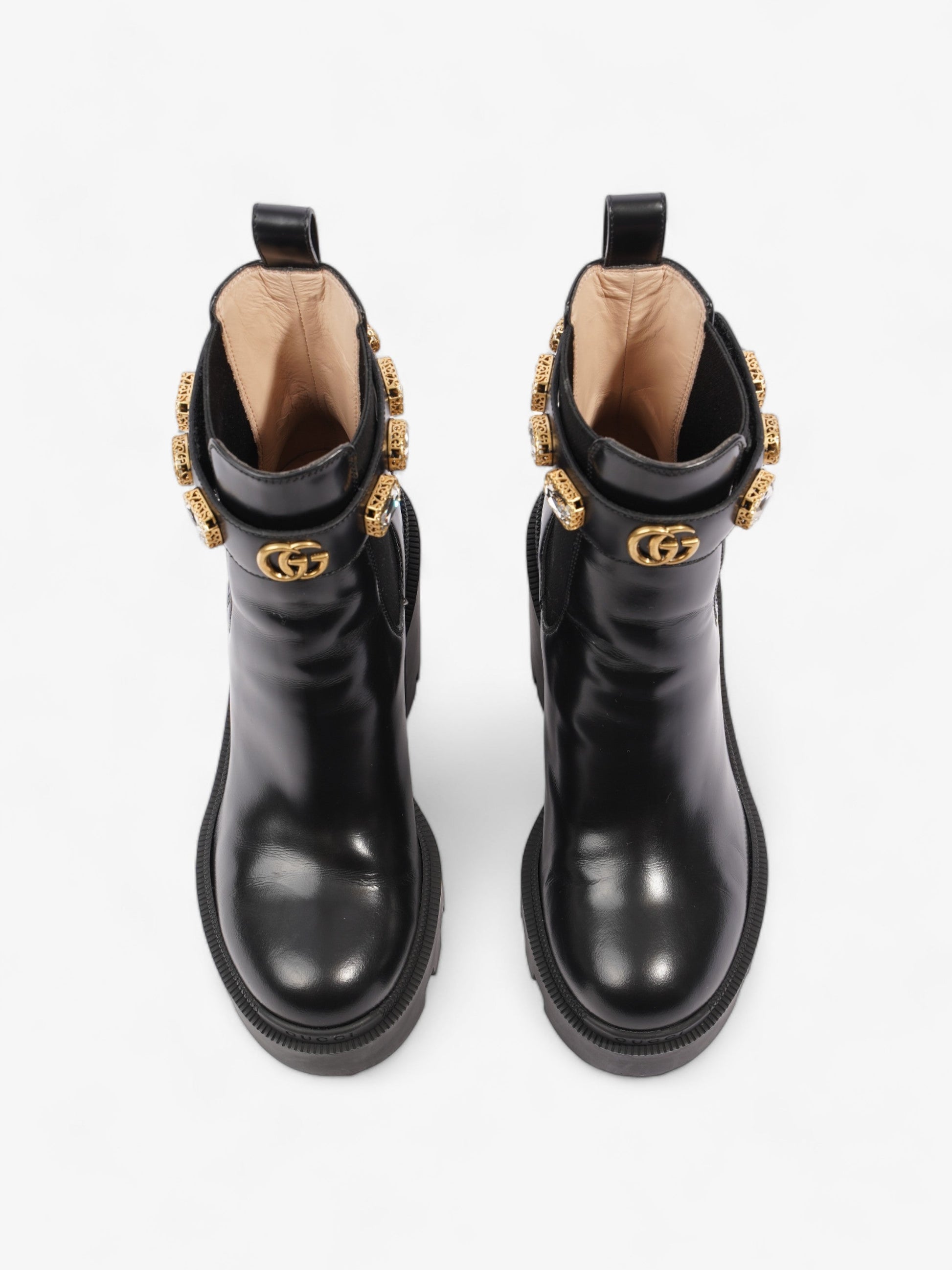 Gucci GG Jewelled Heeled Boots 85mm Black Leather EU 37 UK 4