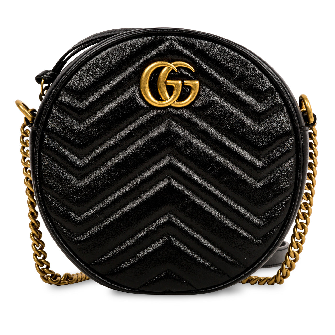 One of the most acclaimed handbags of the last five years, Gucci presents their beloved Marmont bag in an effortlessly cool round silhouette. A classic design�from the brand, the Marmont has been reimagined with differing leathers, colours and shapes this time round by Alessandro Michele.�From brunch, to lunch, to dinner, to cocktails and wherever your night takes you after that, the Gucci Circular GG Marmont is the ideal companion to have by your side. A timeless accessory that will compliment anything you have in your wardrobe, this stunning bag is a necessary addition to any luxury handbag collection.