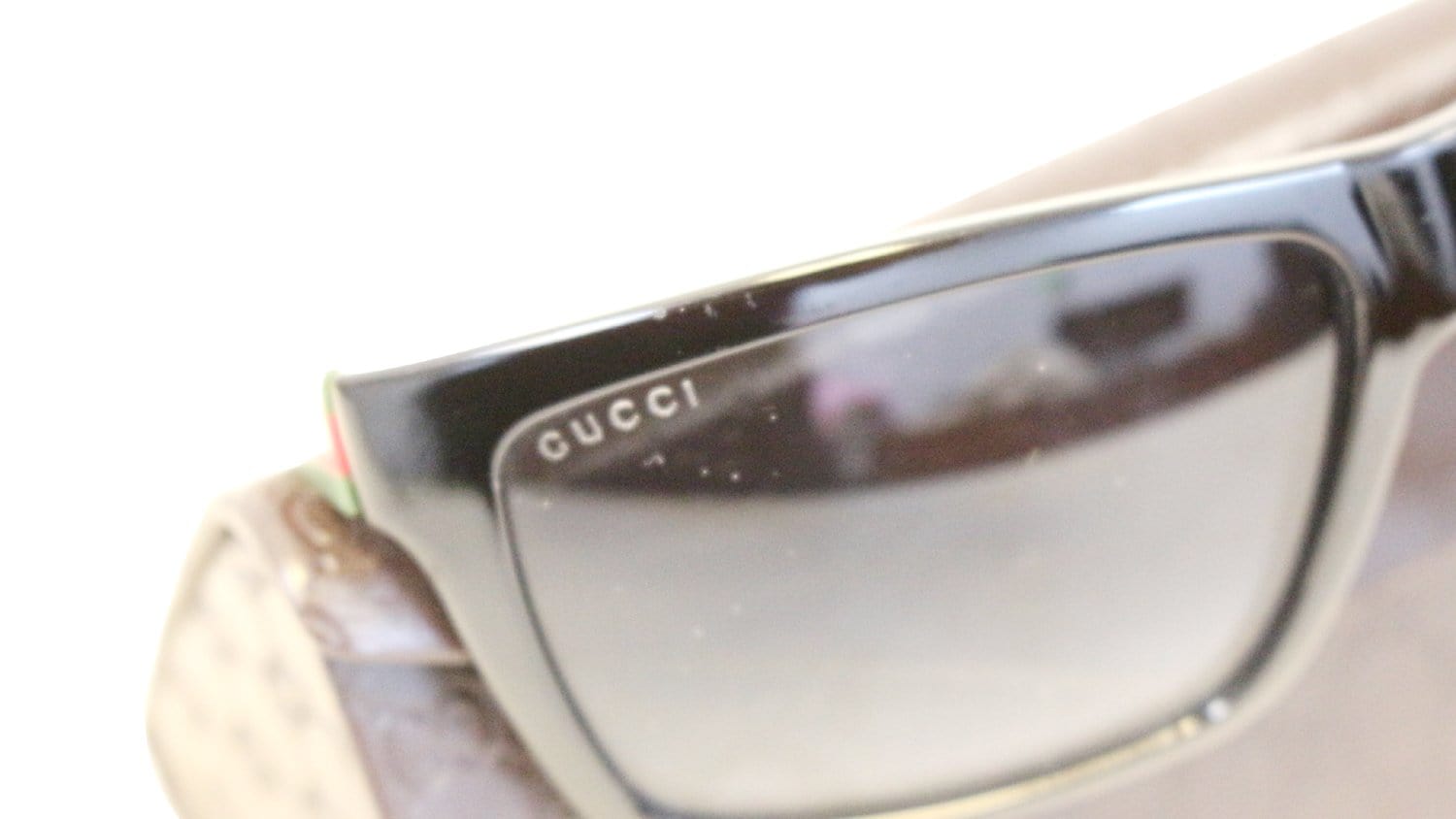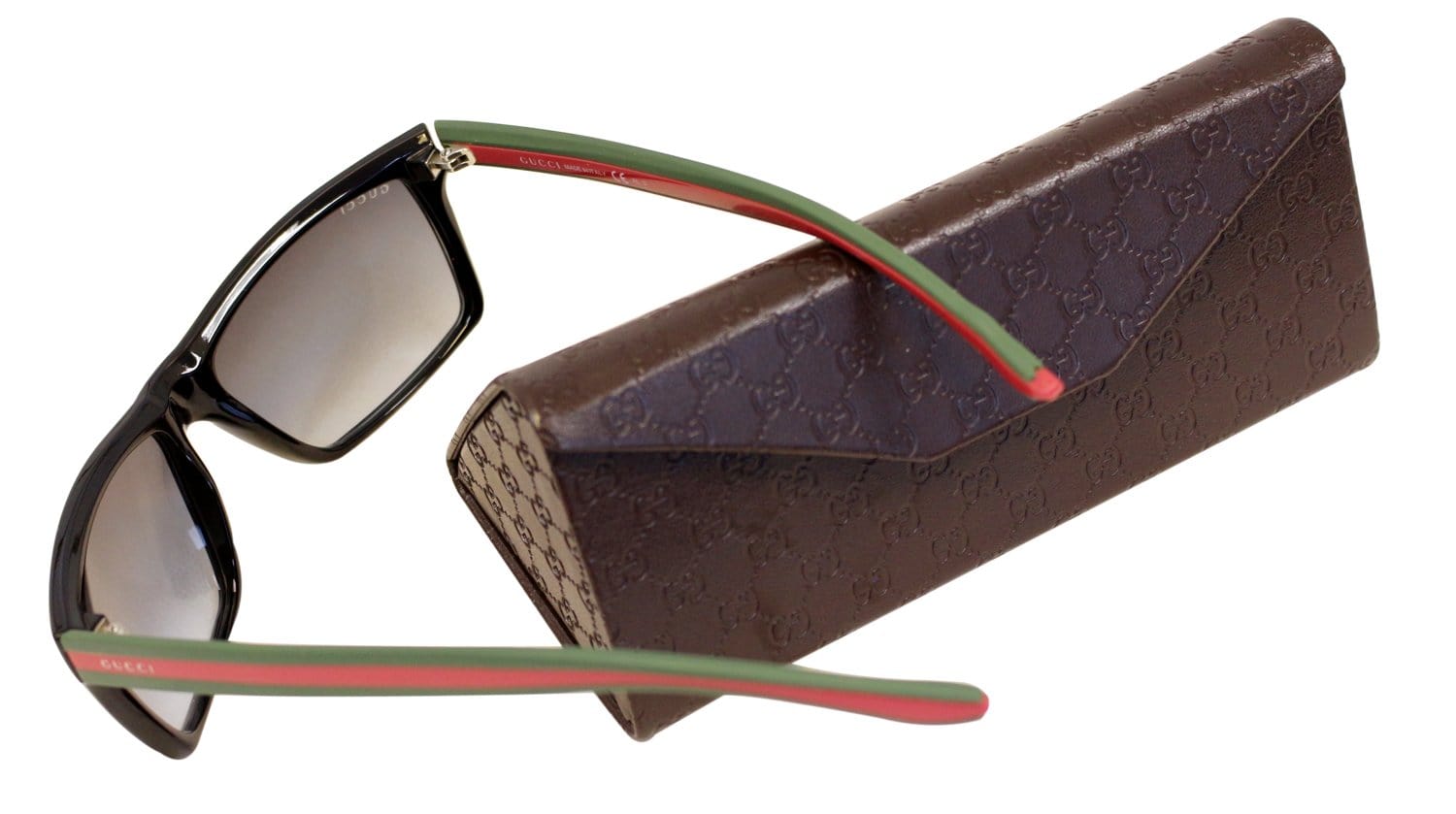 Gucci 1013 Shiny Black Rectangular Red/Green Web Logo Sunglasses GG 1013/S