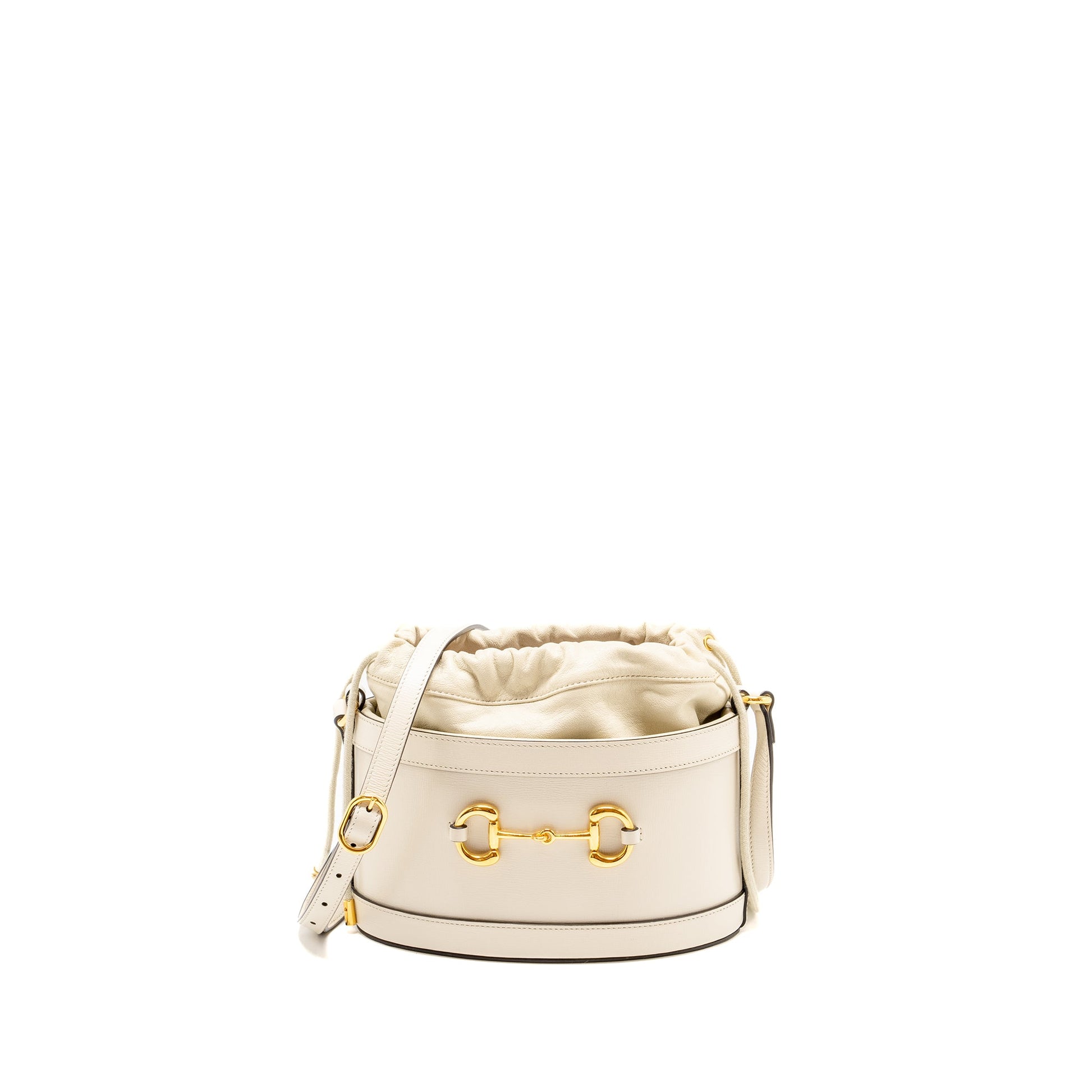 Gucci 1955 Horsebit Bucket Tote Bag Calfskin White