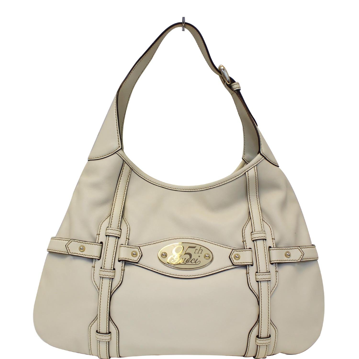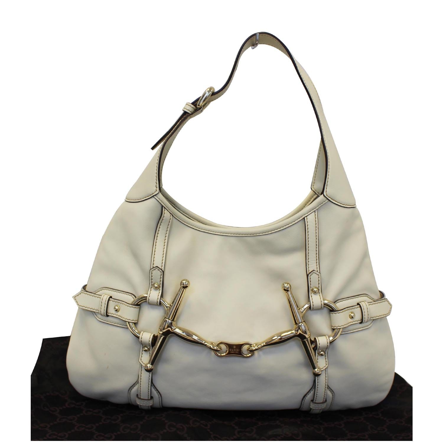 GUCCI 85th Anniversary Horsebit Leather Hobo Bag White 163804