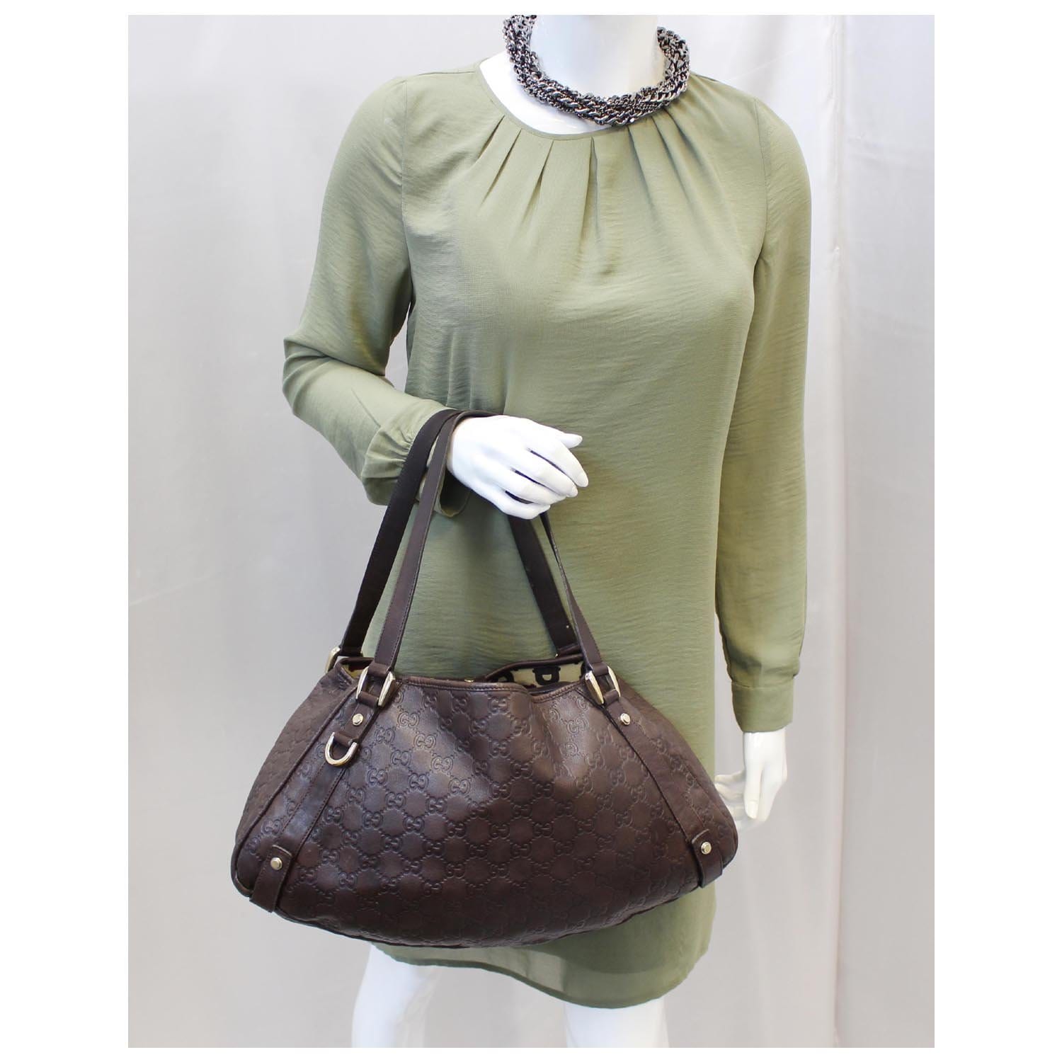 GUCCI Abbey Medium Leather Tote Shoulder Bag Dark Brown
