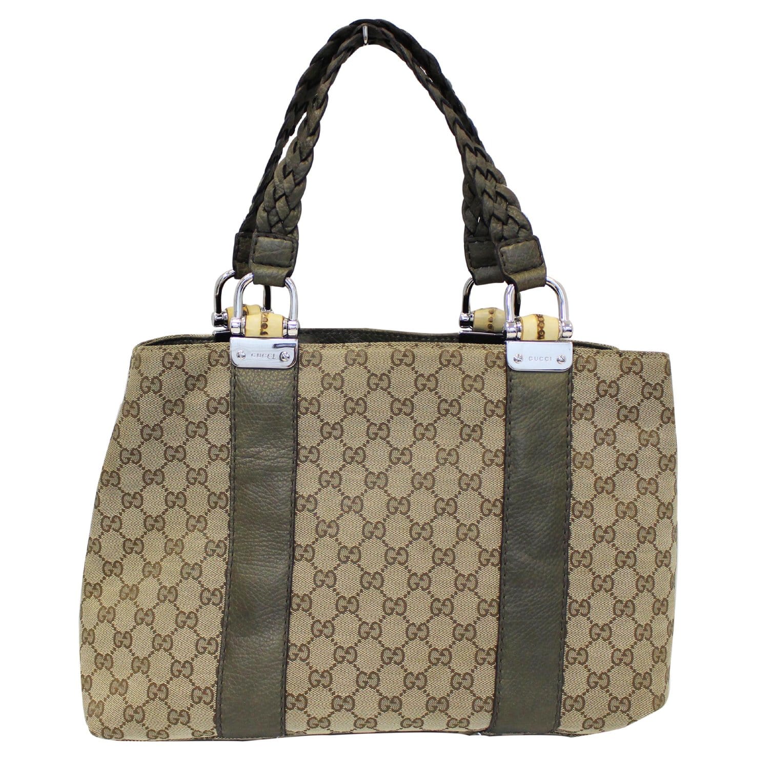 GUCCI Bamboo Bar GG Canvas Tote Bag Beige 232947