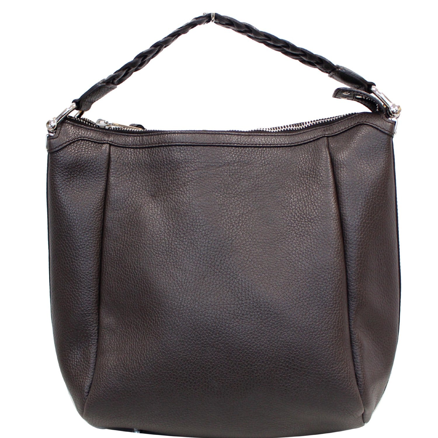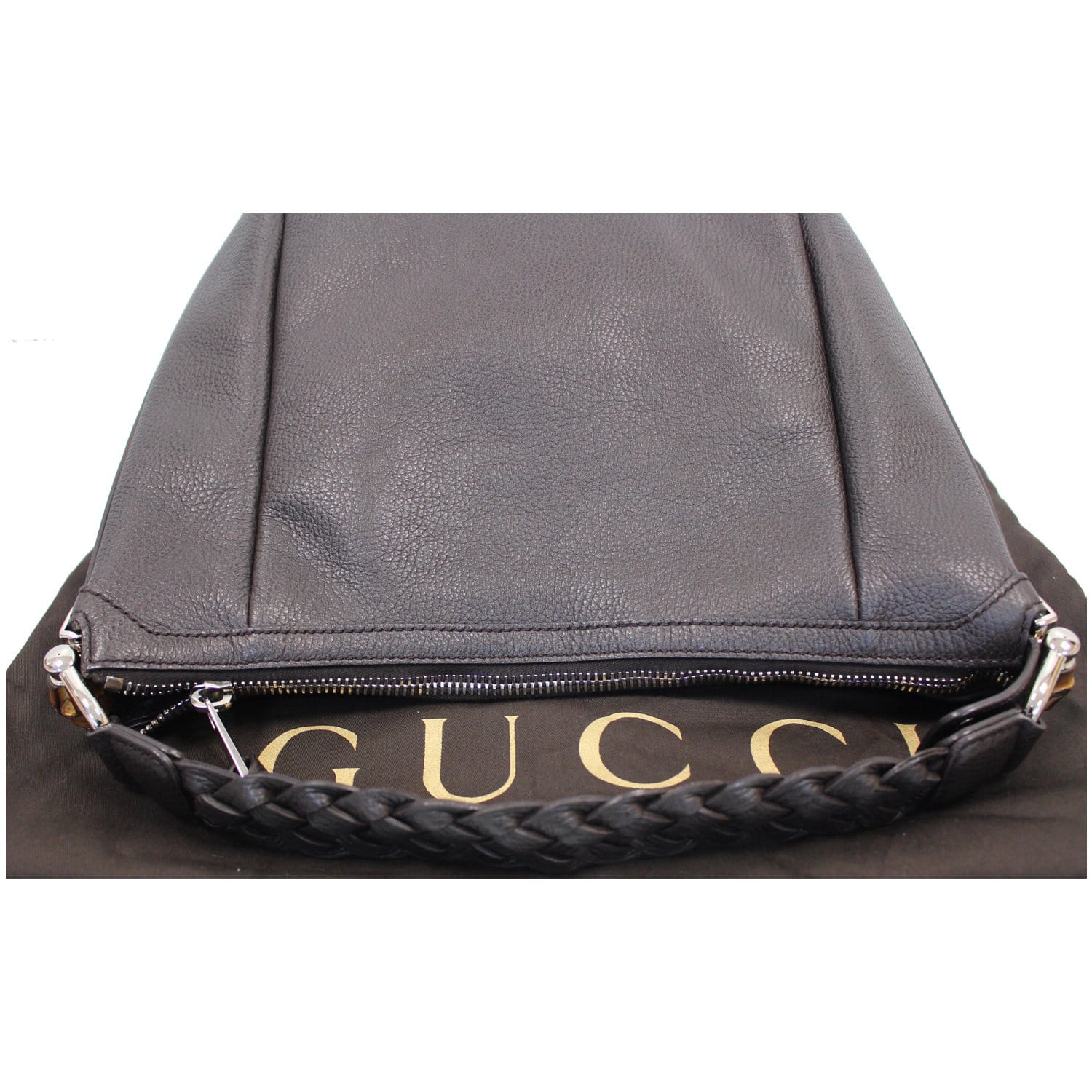 GUCCI Bamboo Bar Grained Calfskin Hobo Bag Dark Brown 336655