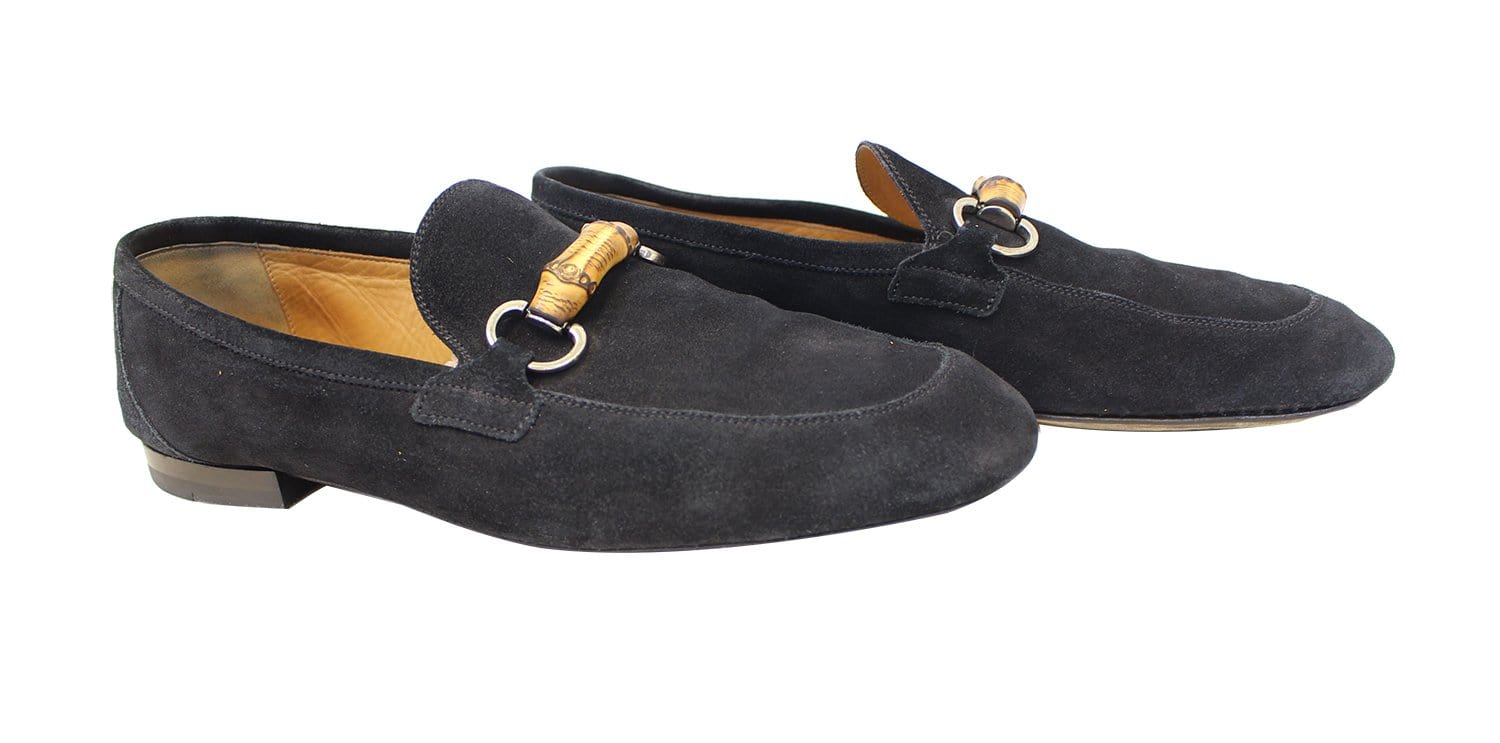 Gucci Bamboo Horsebit Black Suede Loafers 368435 Size 7