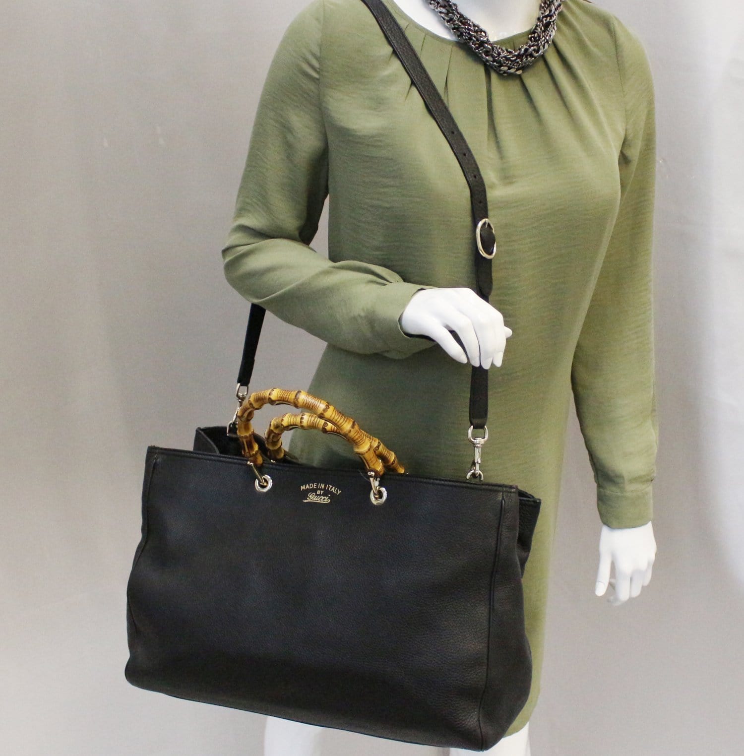 GUCCI Bamboo Shopper Black Leather Tote Bag