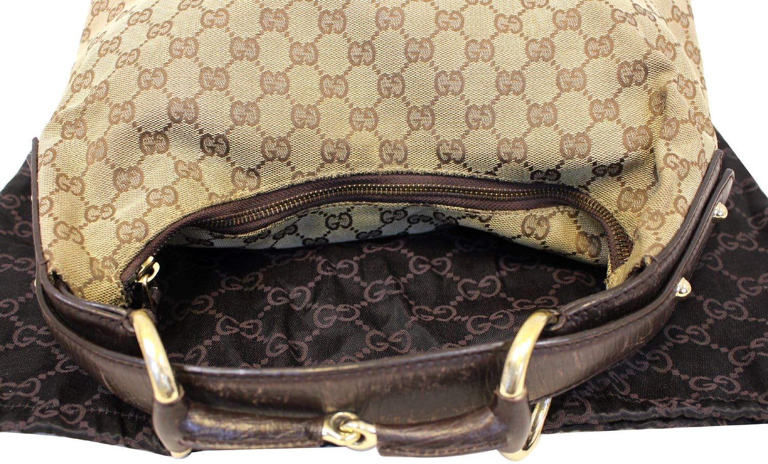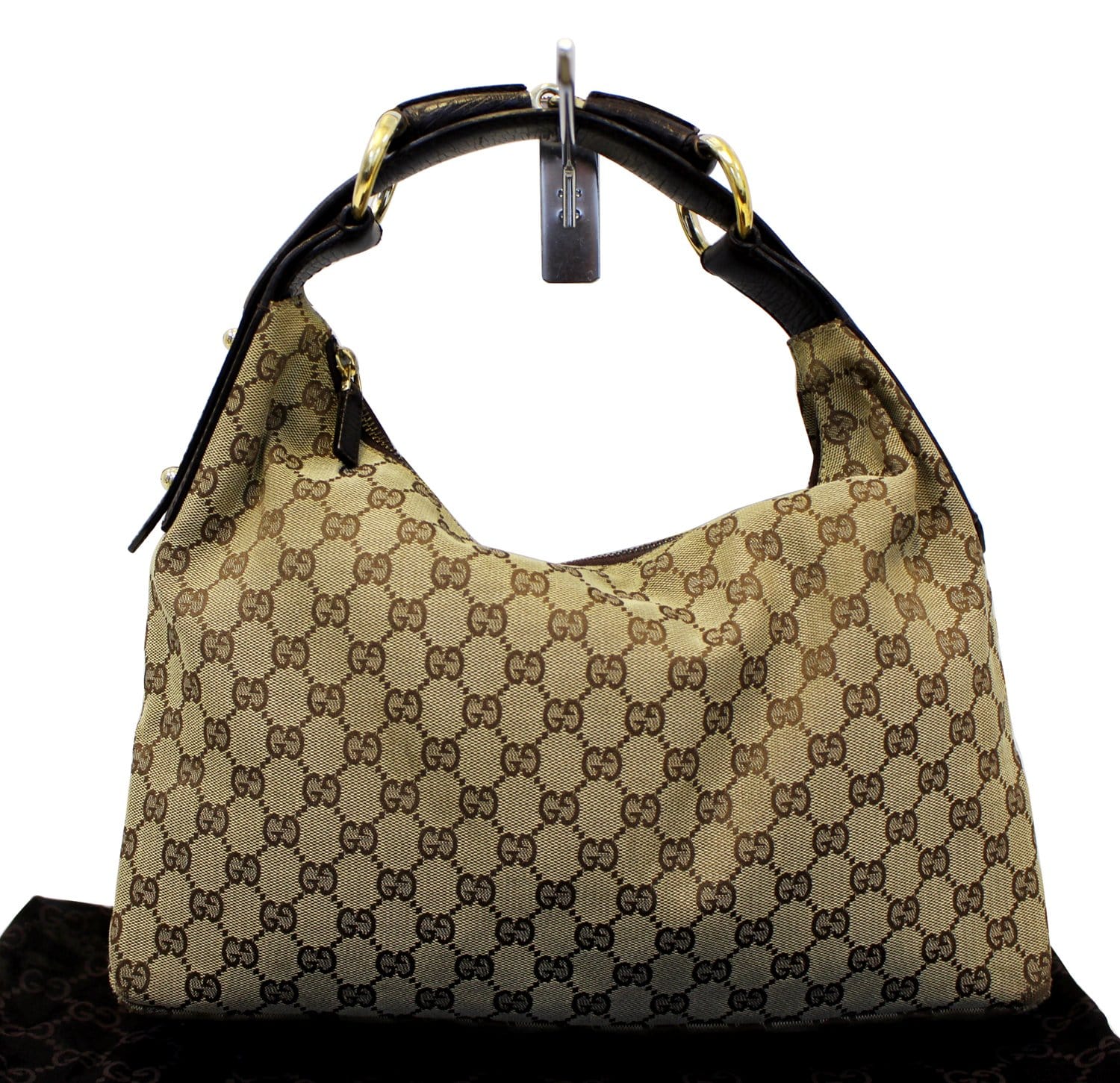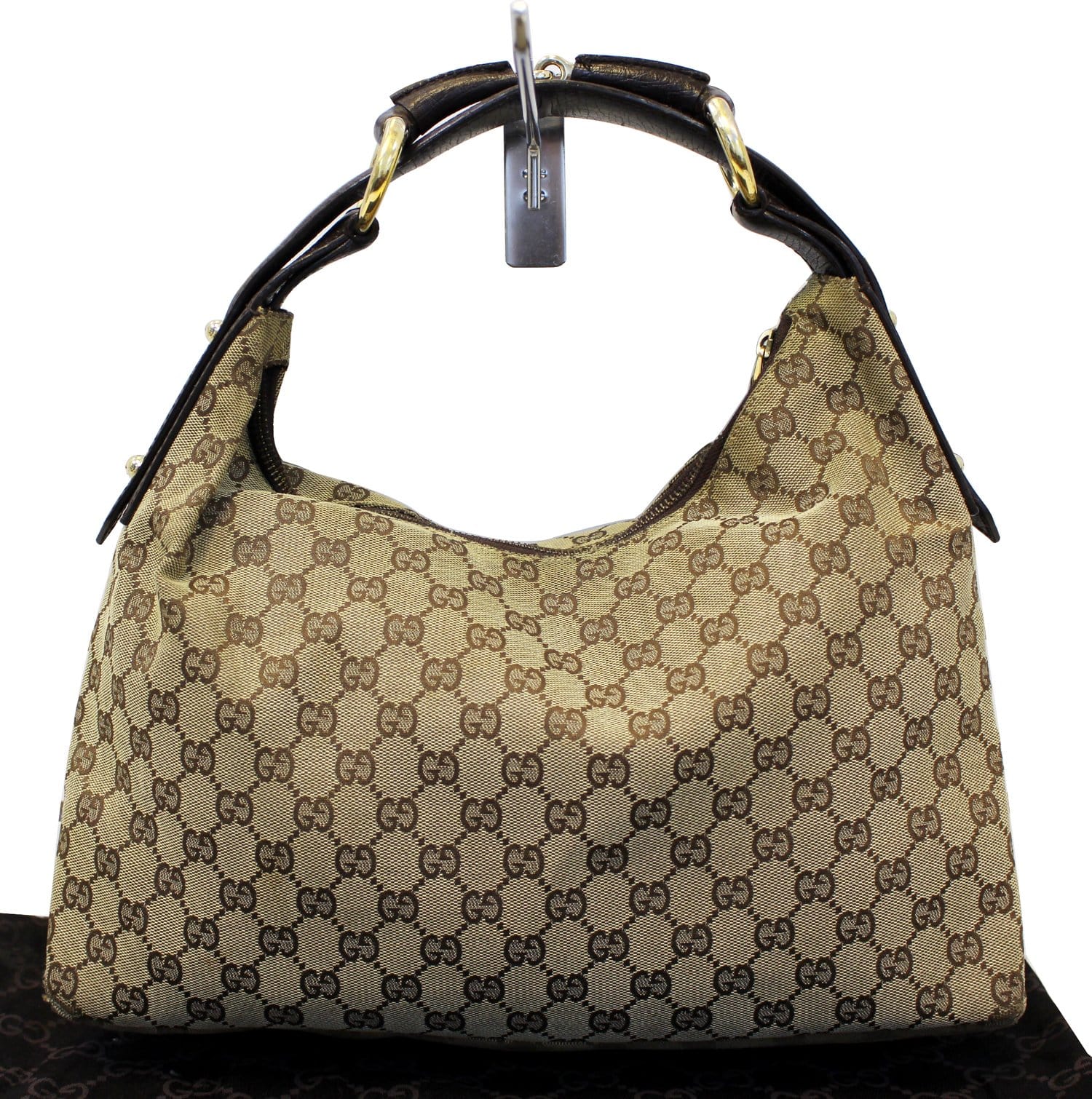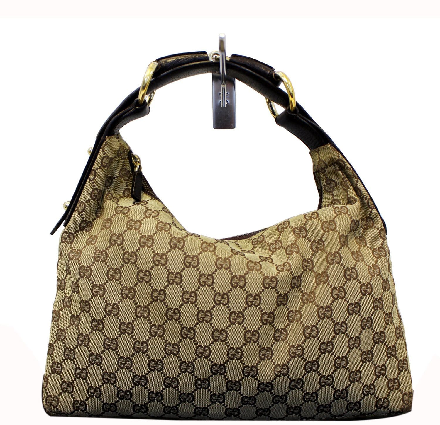 GUCCI Beige GG Canvas Medium Horsebit Hobo Bag