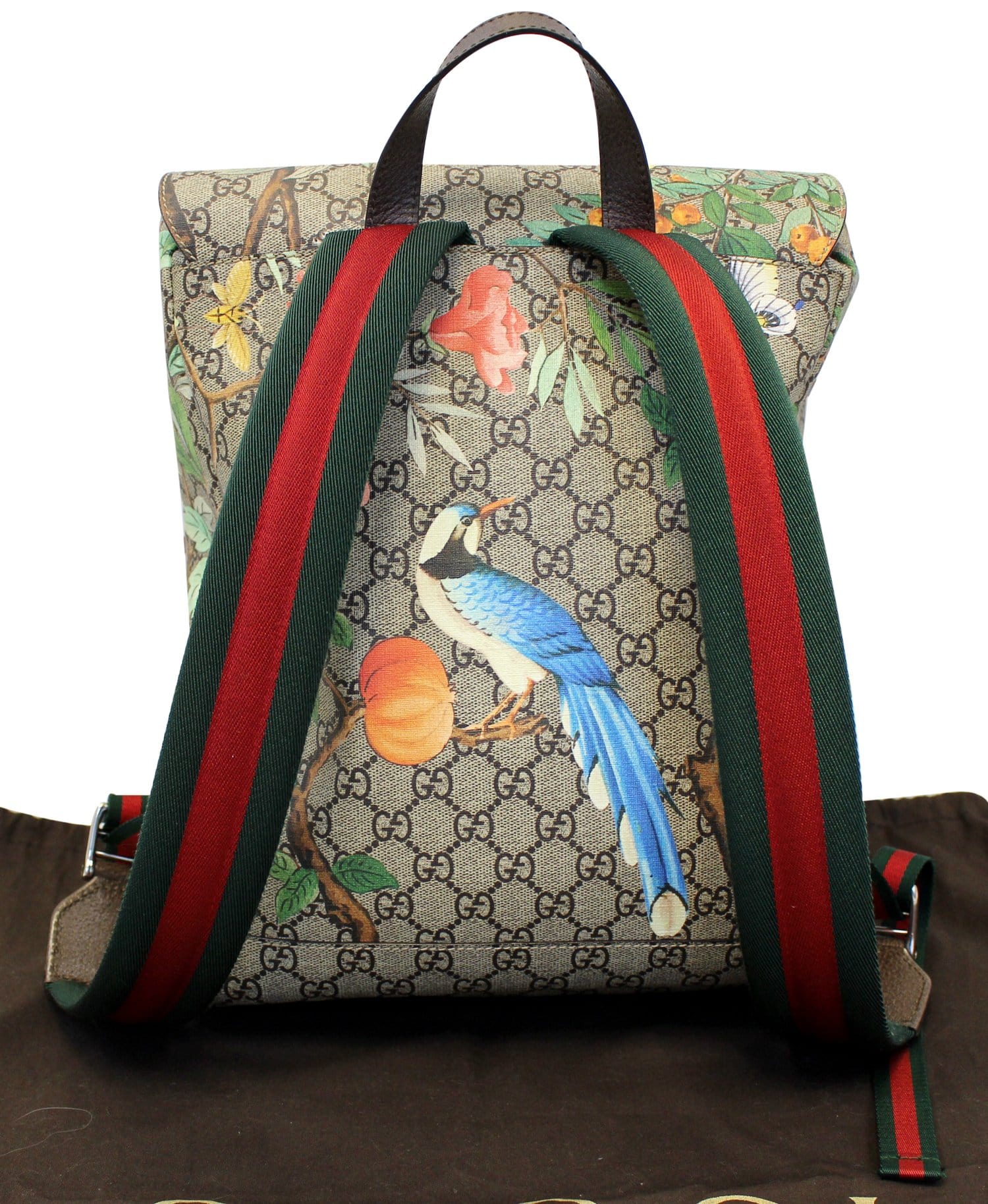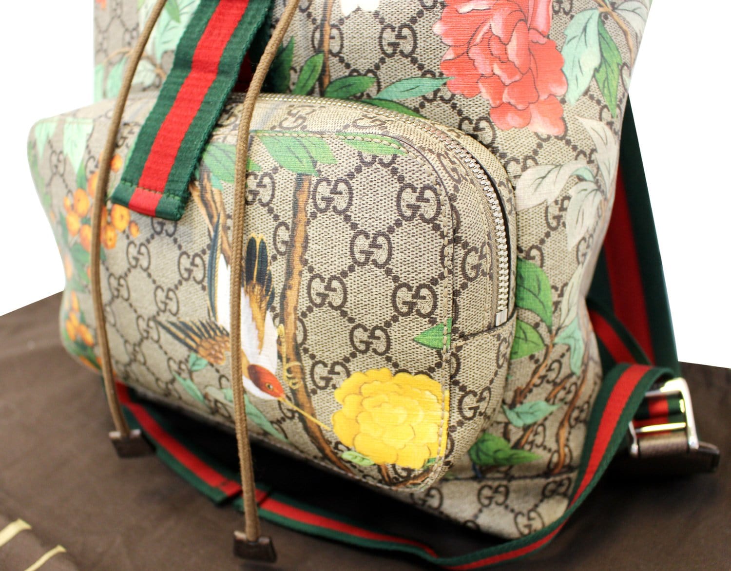 GUCCI - First appearing in Gucci's 2015 F/W winter collection, the instantly recognizable Blooms motif is a gorgeous and feminine print, overlaid on top of the classic GG coated canvas. The backpack features a durable nylon top with a drawstring closure and buckle closure to ensure all you belonging is stays safely inside. The interior is spacious for all your daily essentials.