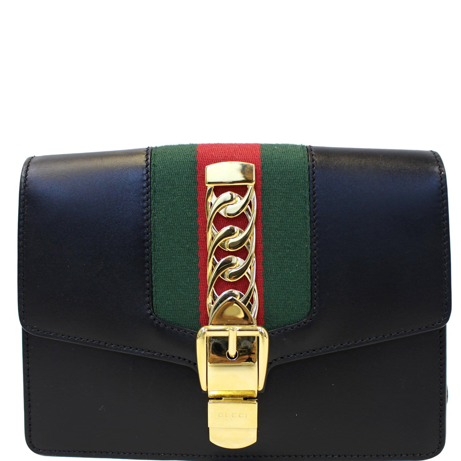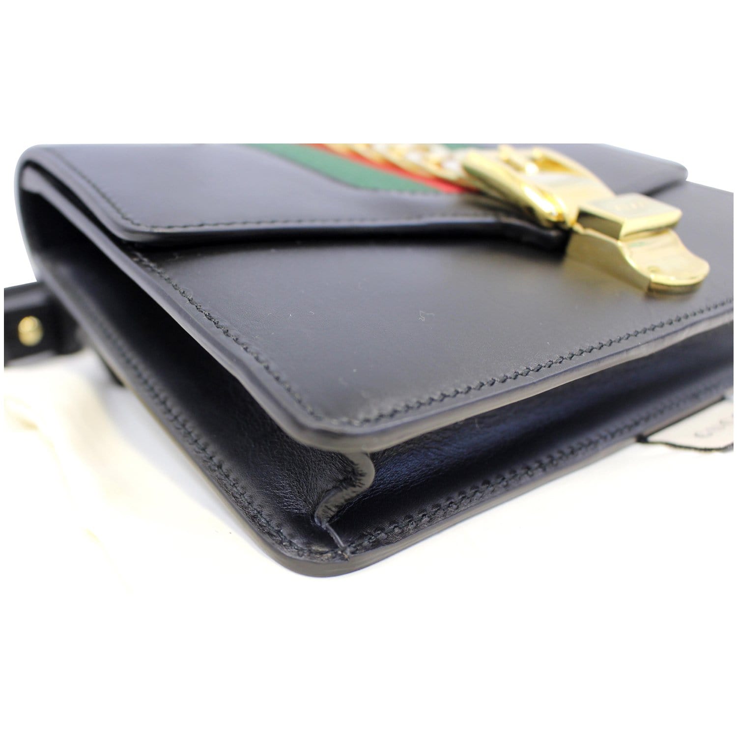 GUCCI Sylvie Calfskin Leather Belt Bumbag Black 476811