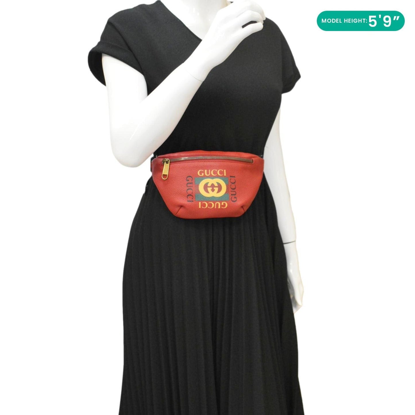GUCCI Print Small Leather Belt Waist Bum Bag in Red
