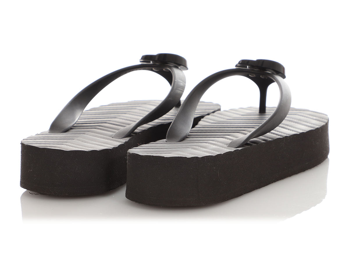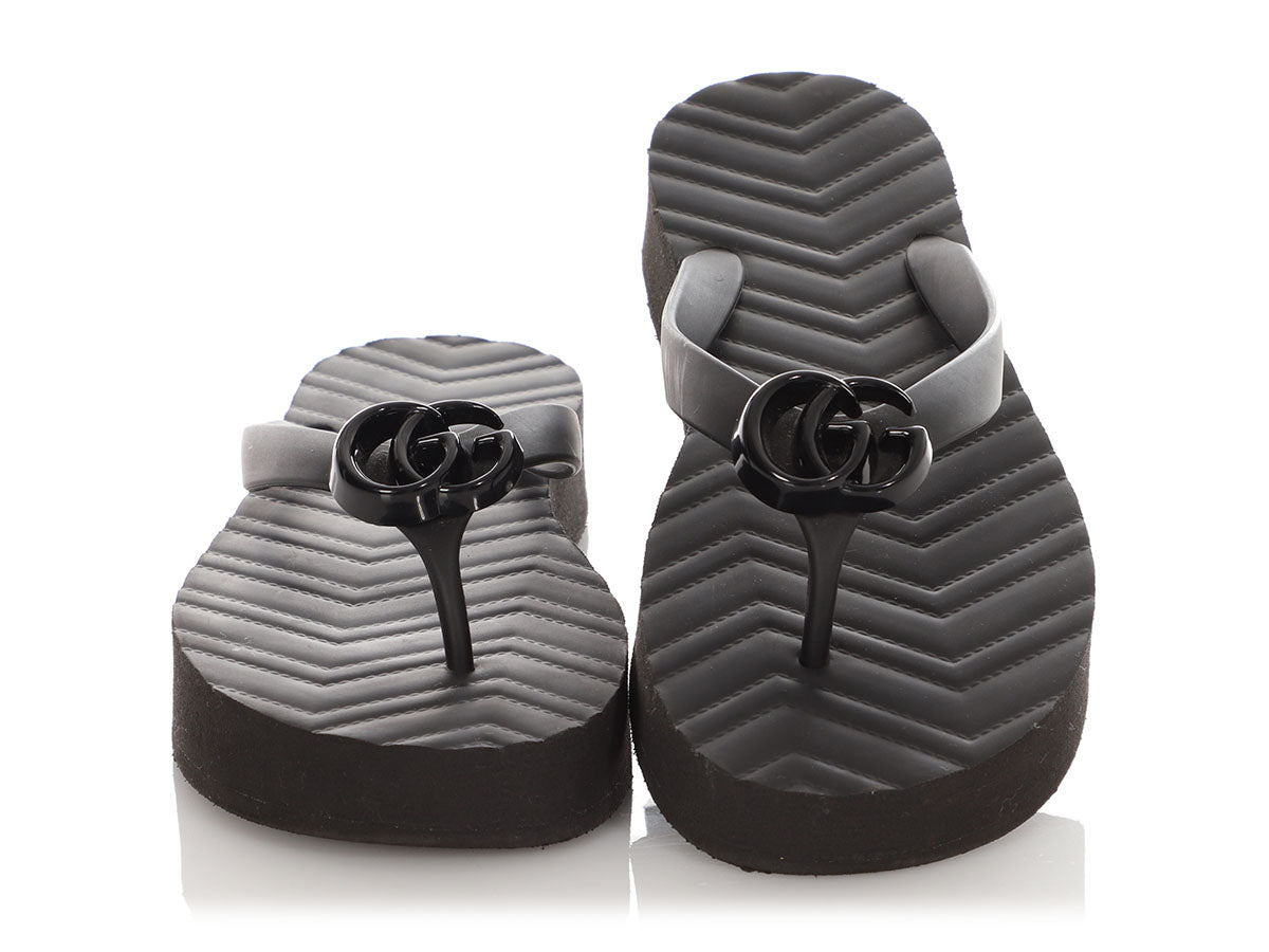 Gucci Black GG Rubber Thong Sandals